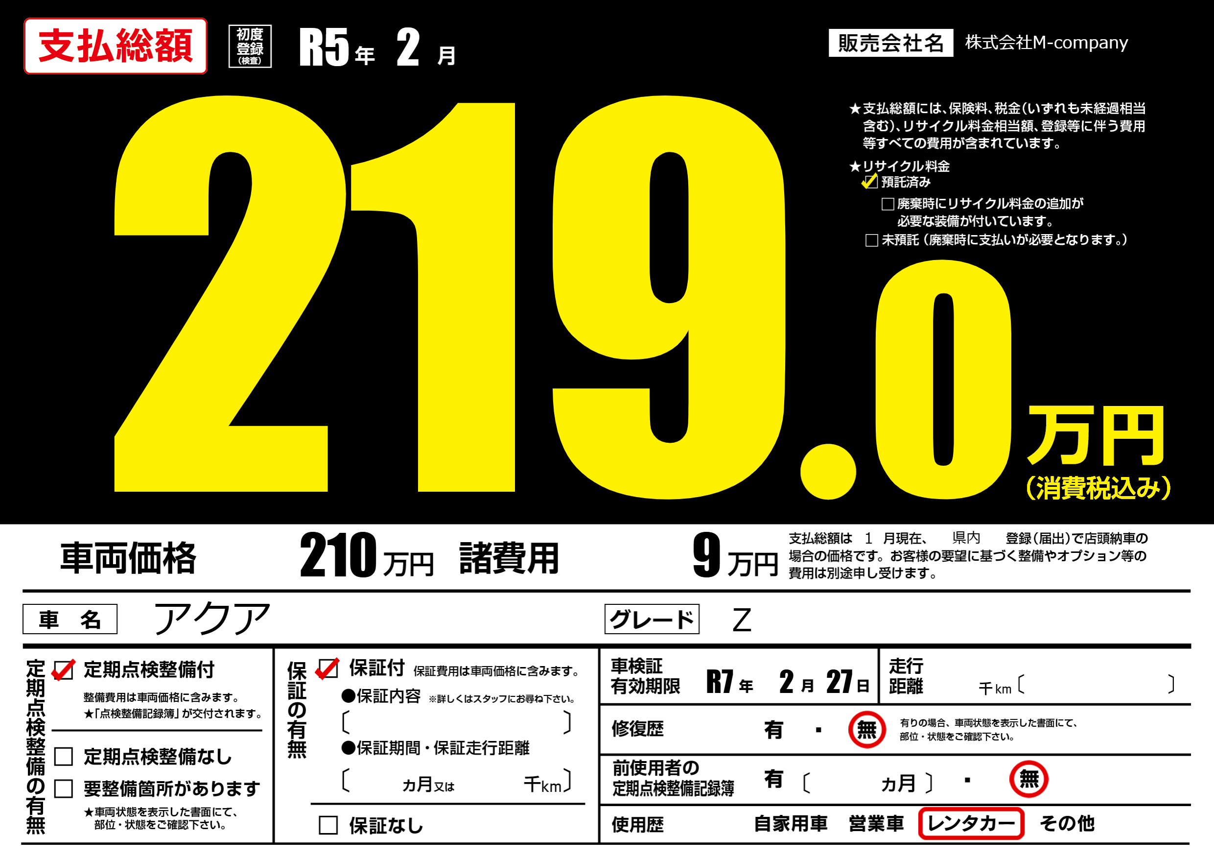 | 走行キロ | - | 初年度登録 | R5年2月 |