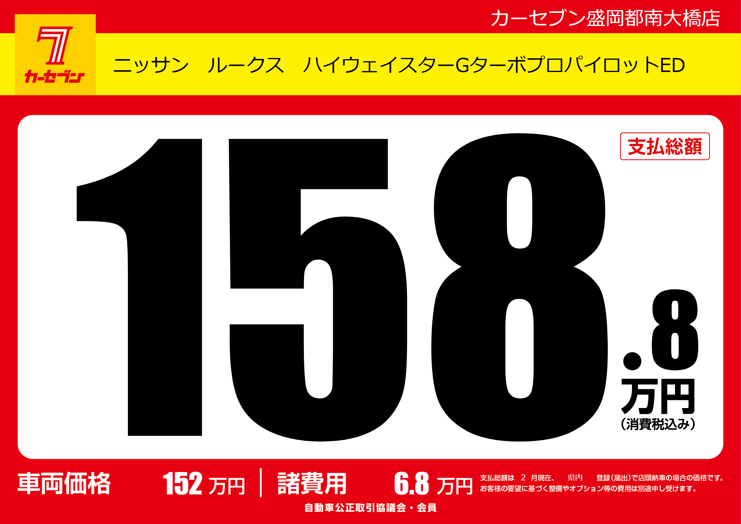 | 車名 | ニッサン ルークス ハイウェイスターGターボプロパイロットED | グレード ミッション 排気量 |