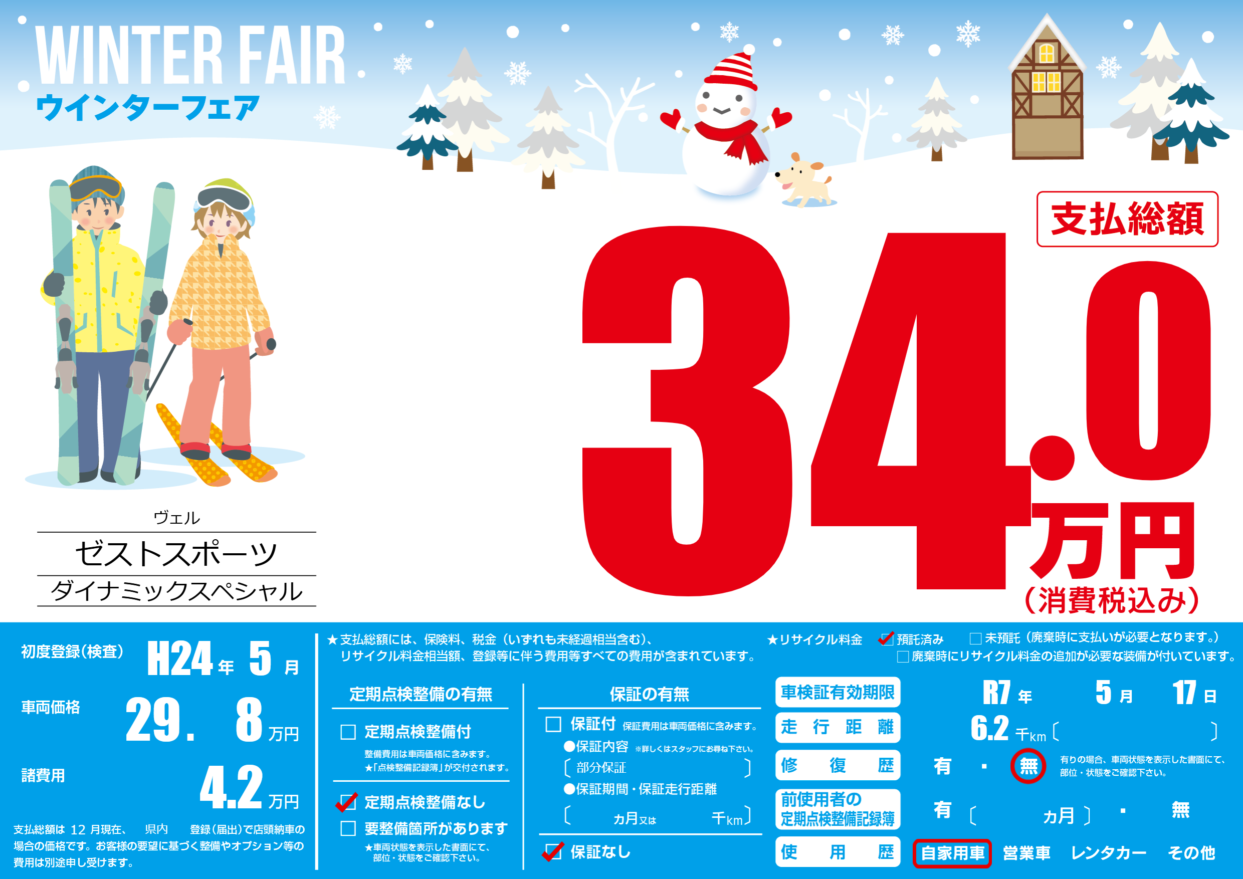 | 走行キロ | 0.6万km | 初年度登録 | H24年5月 |