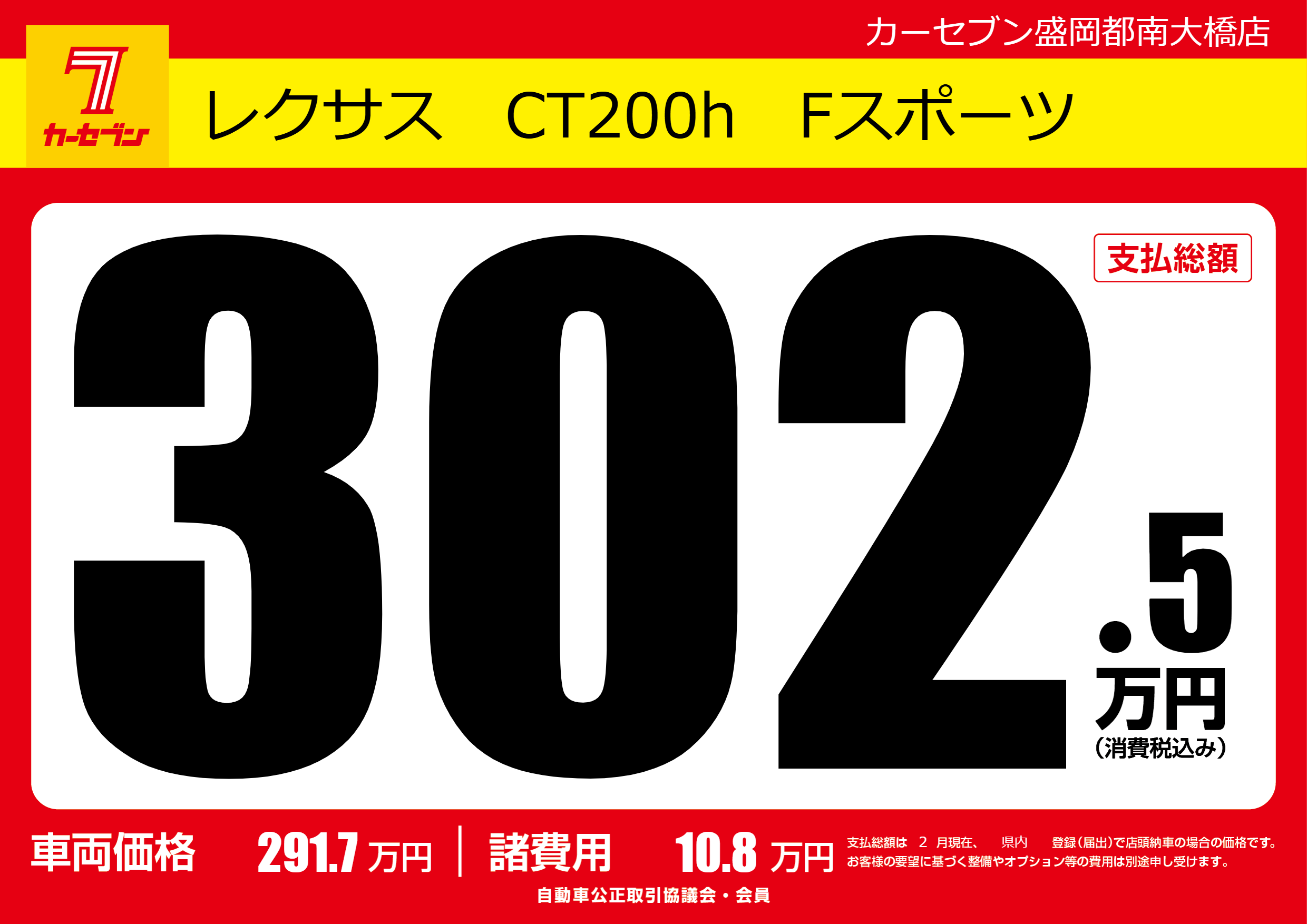 | 車名 | レクサス CT200h Fスポーツ | グレード ミッション 排気量 |