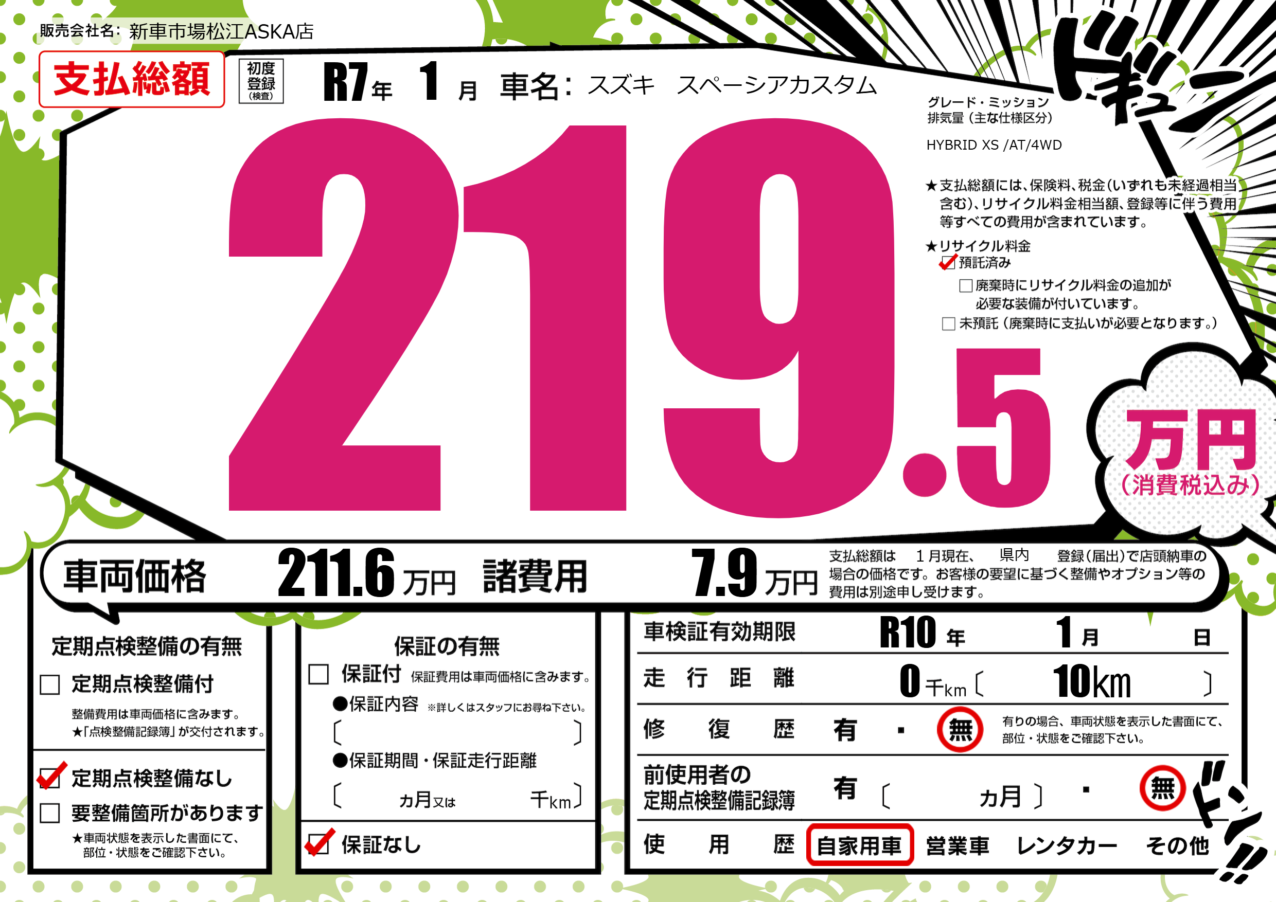 車検制限 R10年 1月 - 日