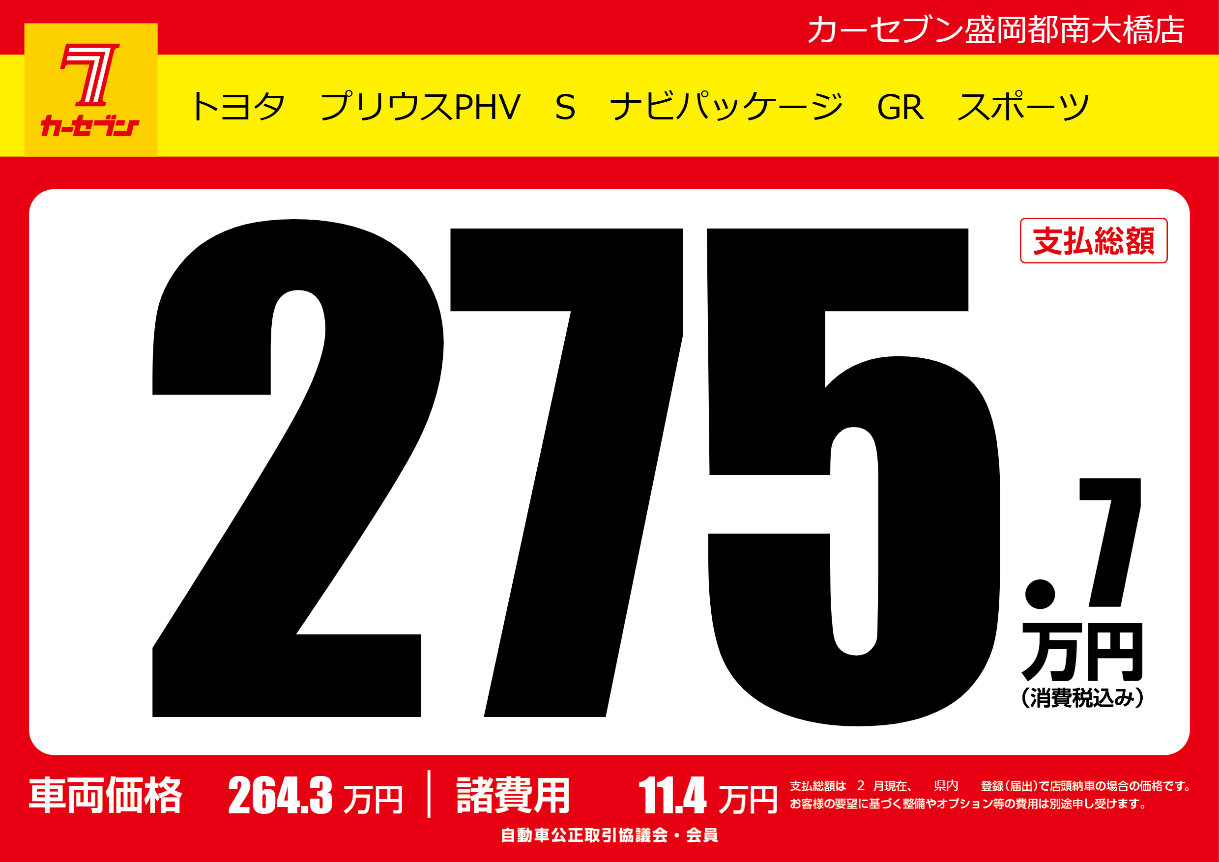 | 車名 | トヨタ プリウスPHV S ナビパッケージ GR スポーツ | グレード ミッション 排気量 |