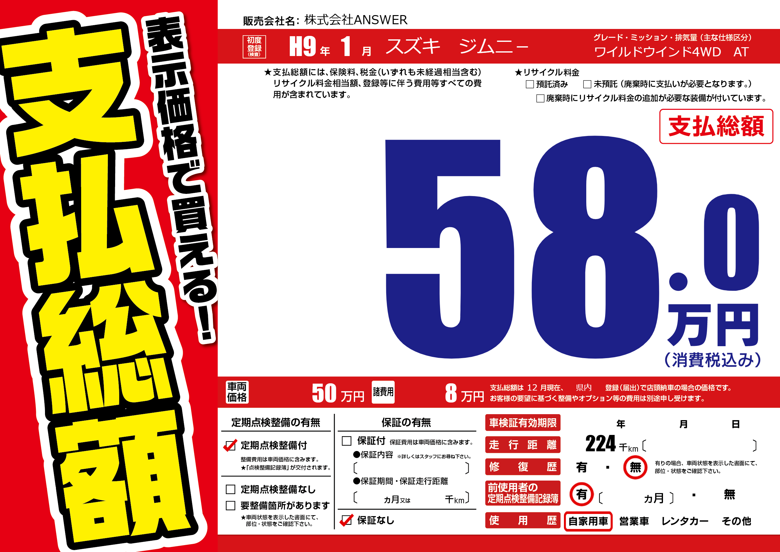 初年度登録 H9年1月