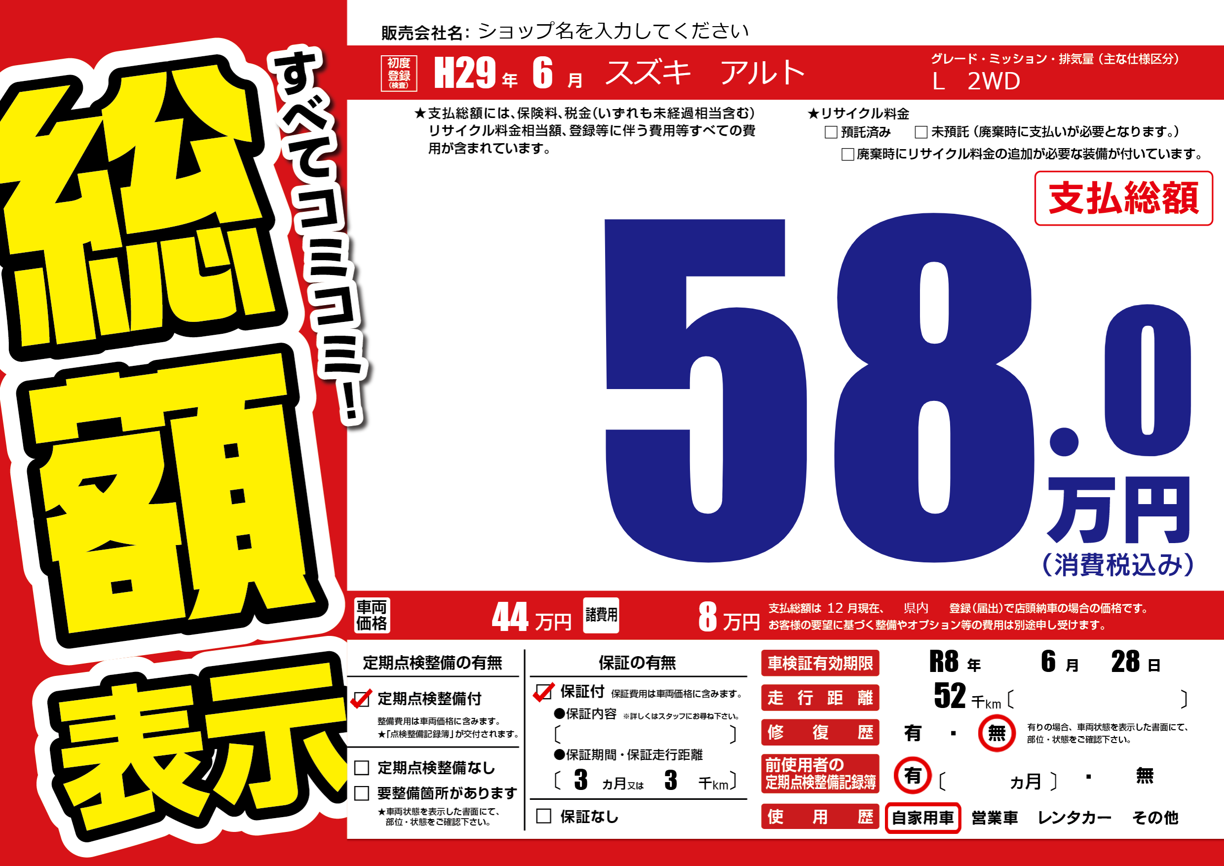保証付き 保証内容(---) 3ヶ月または(3)千kmまで |