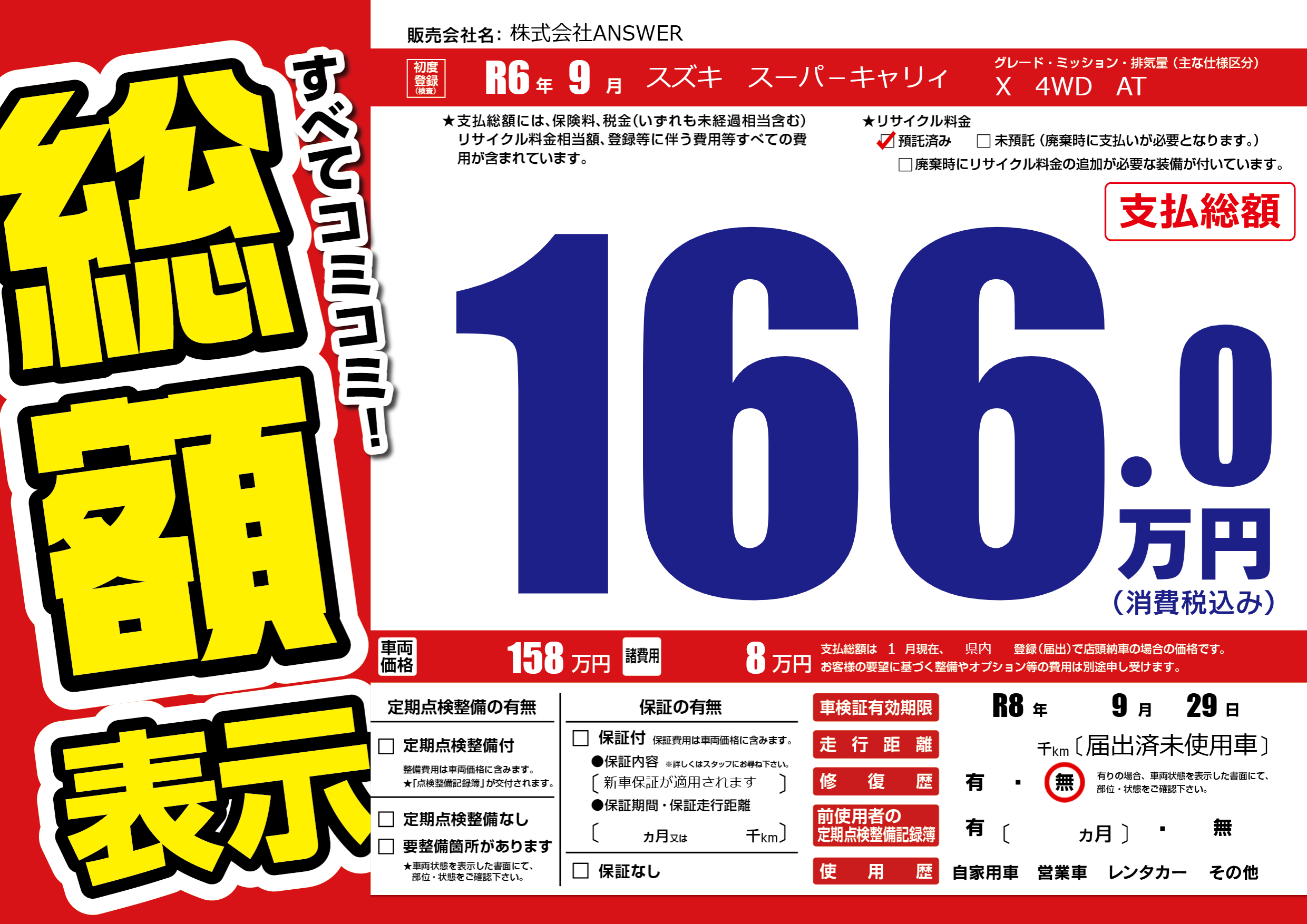 なし | 車検制限 | R8年9月29月 |
