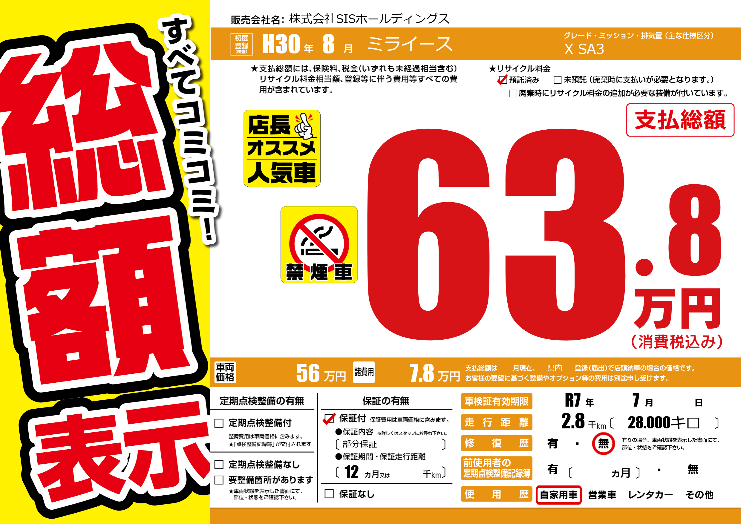 | 車検制限 | R7年 7月 - 日 | ||