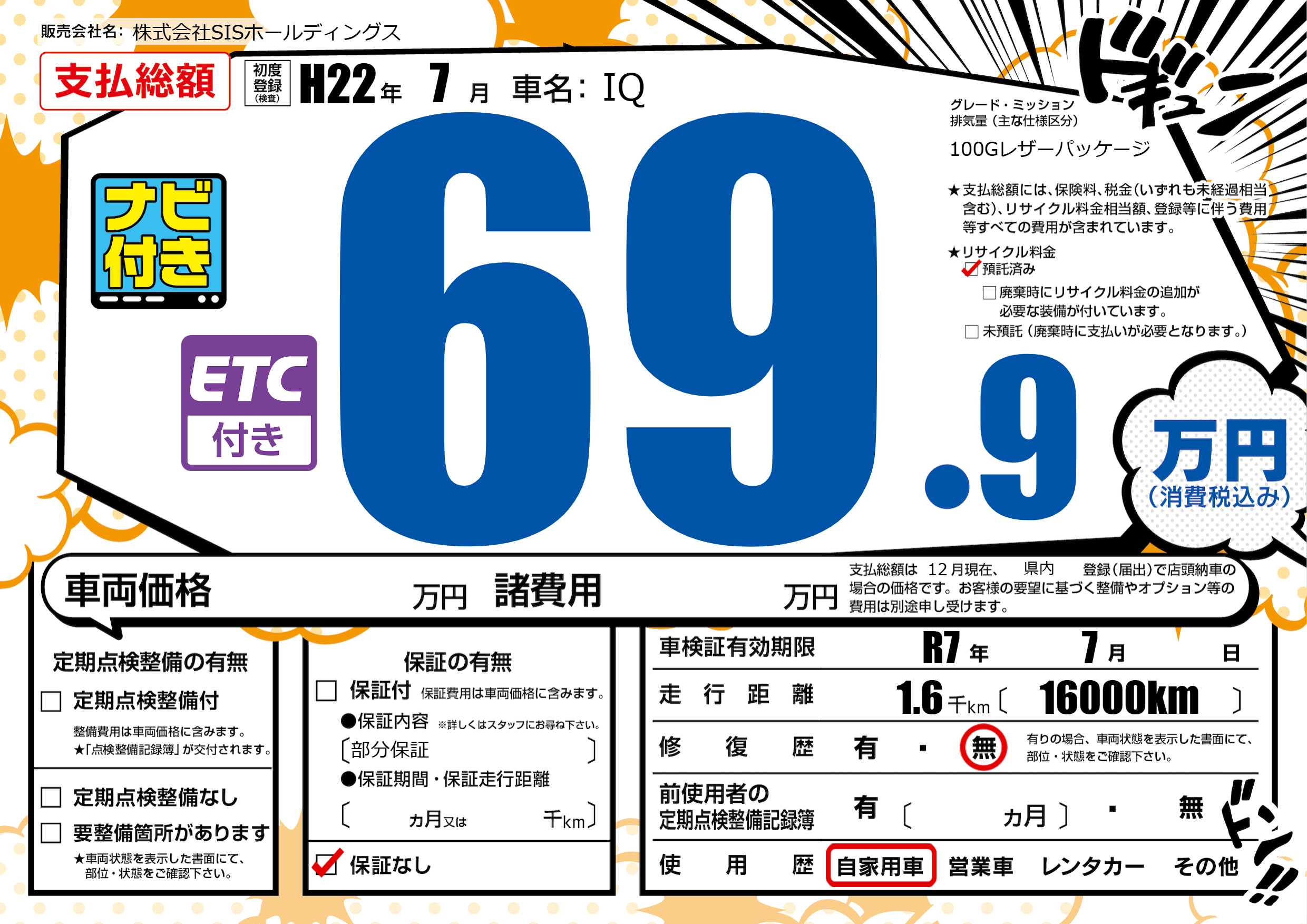 | 車検制限 | R7年 7月 - 日 | ||