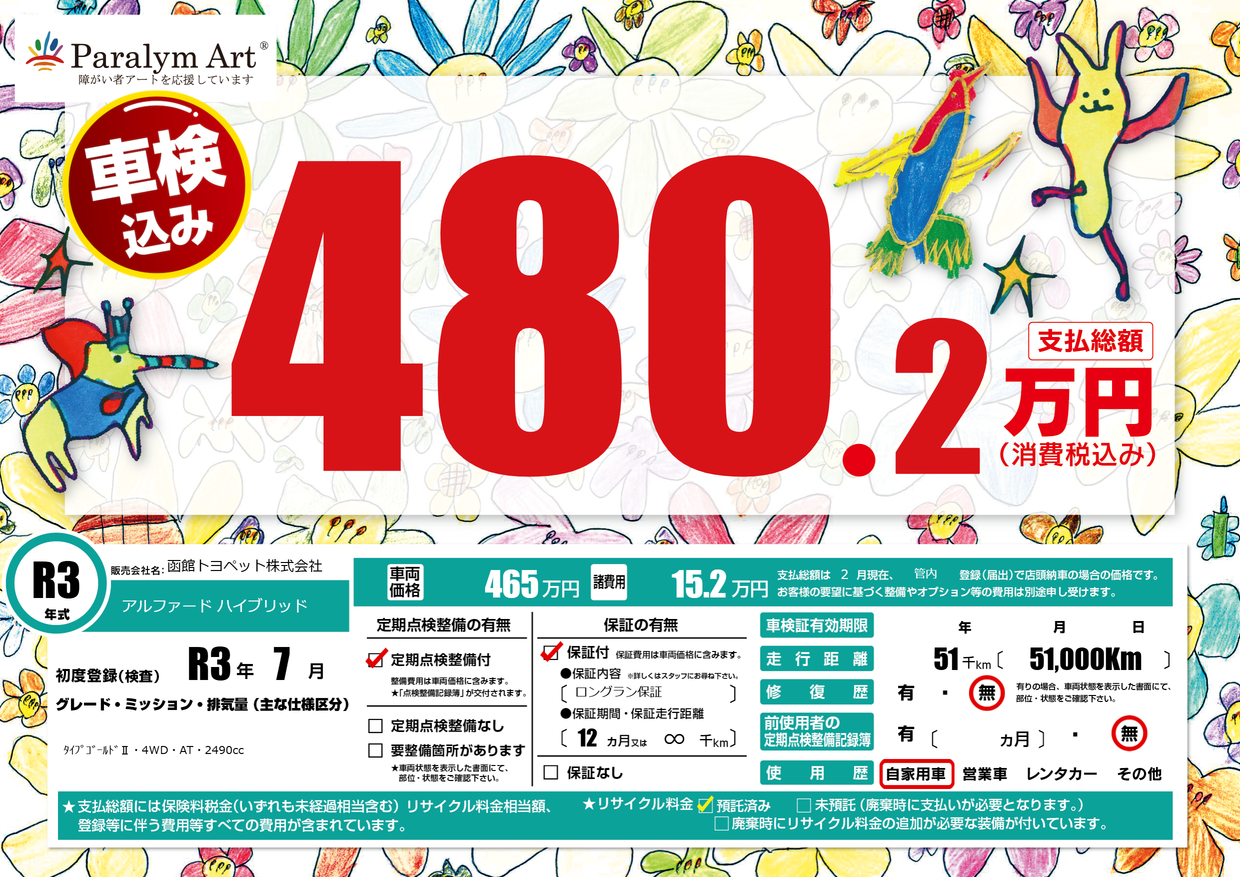| 走行キロ | 5.1万km | 初年度登録 | R3年7月 |