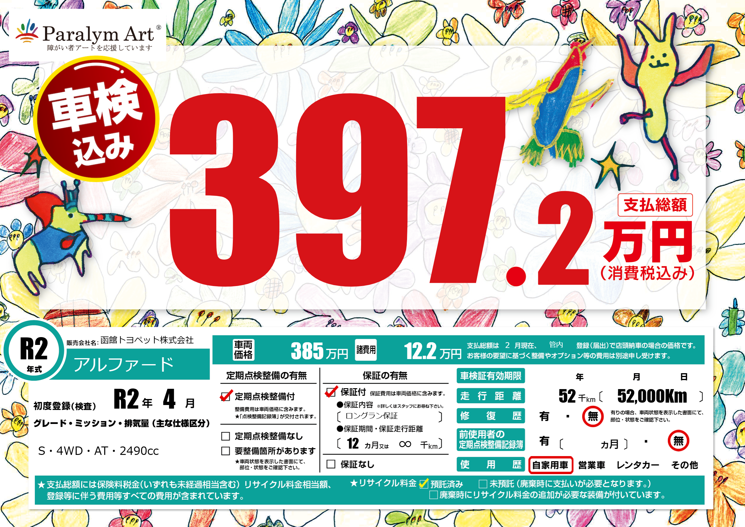 | 車名 | アルファード | グレード ミッション 排気量 |