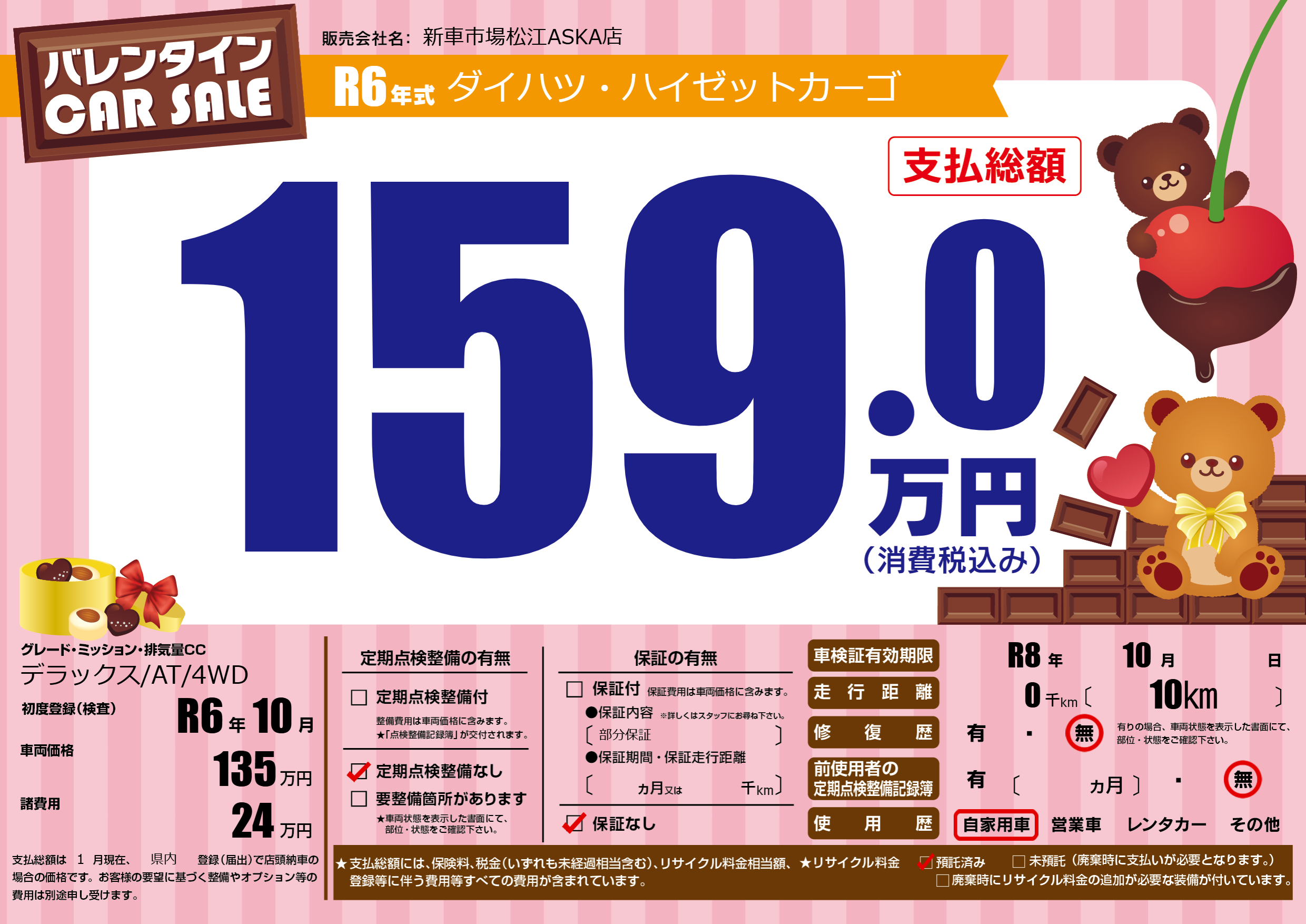 | 車名 | ダイハツ・ハイゼットカーゴ | グレード ミッション 排気量 |