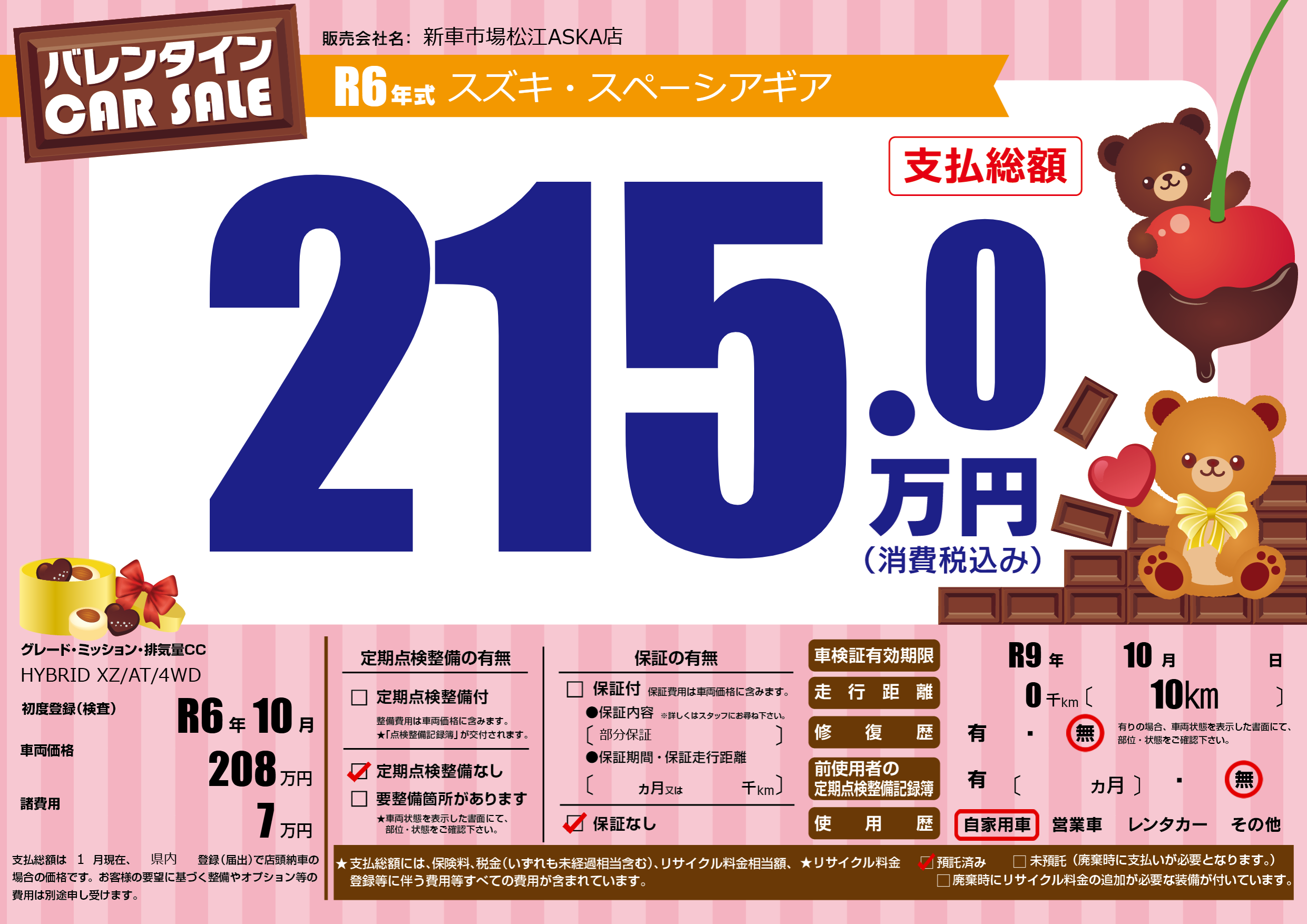 | 走行キロ | - | 初年度登録 | R6年10月 |