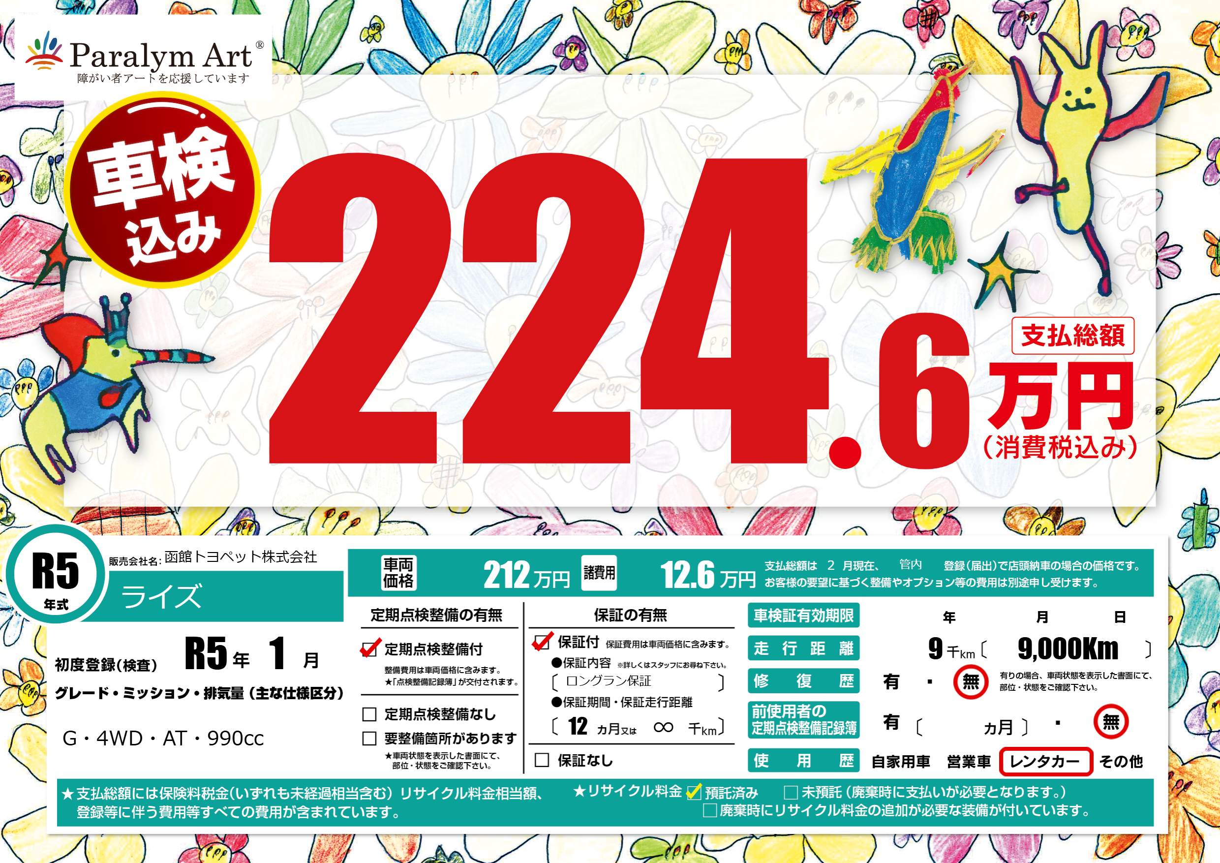 | 走行キロ | 0.9万km | 初年度登録 | R5年1月 |
