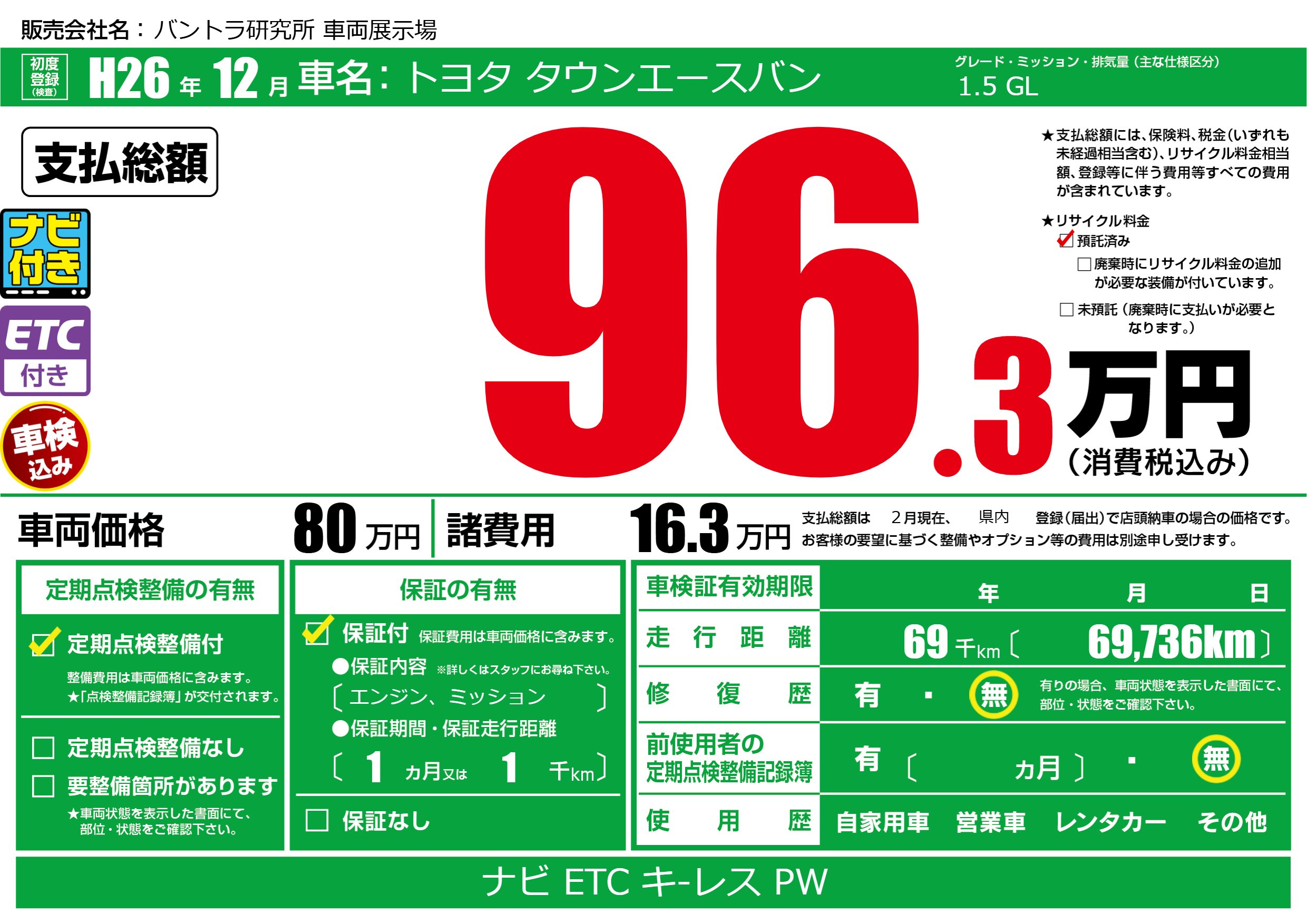 | 定期点検整備 | 定期点検整備あり | ||
