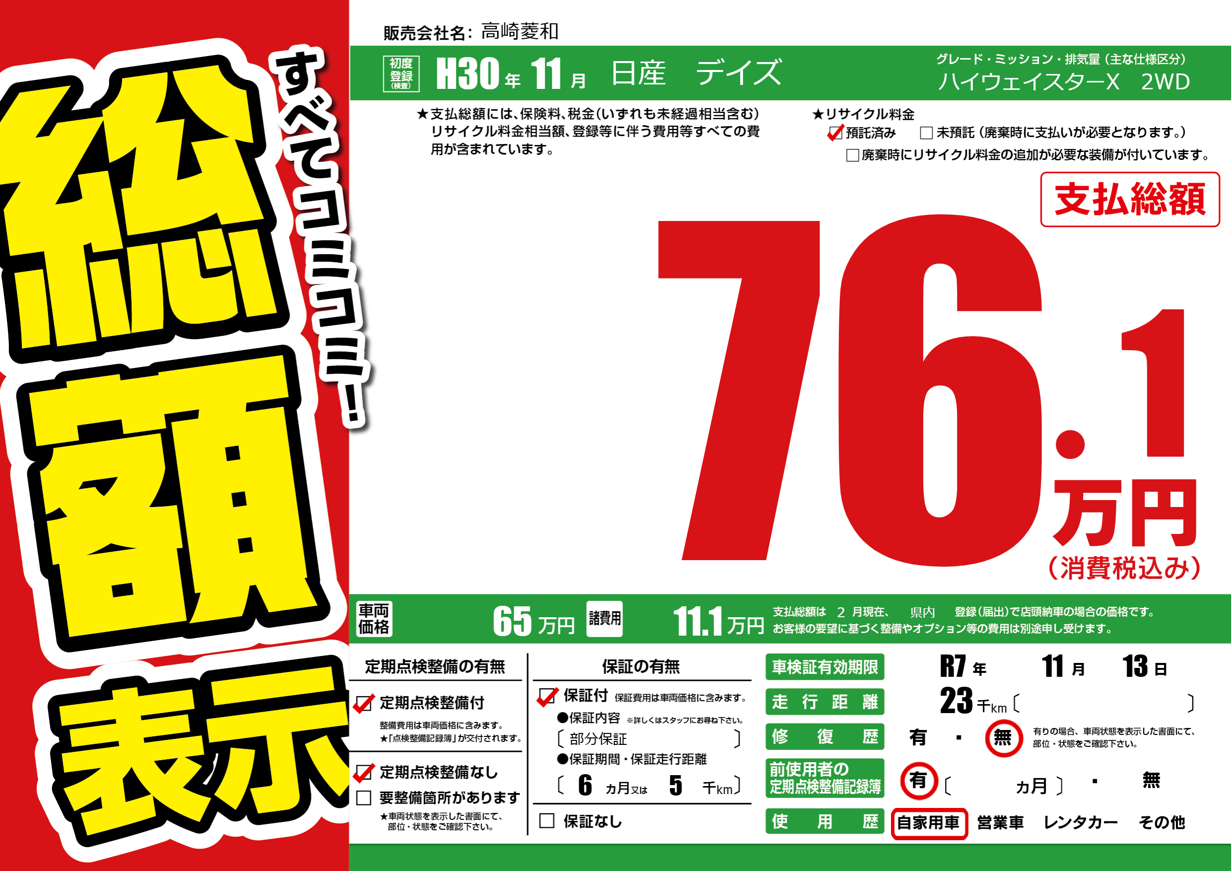 なし | 車検制限 | R7年11月13月 |