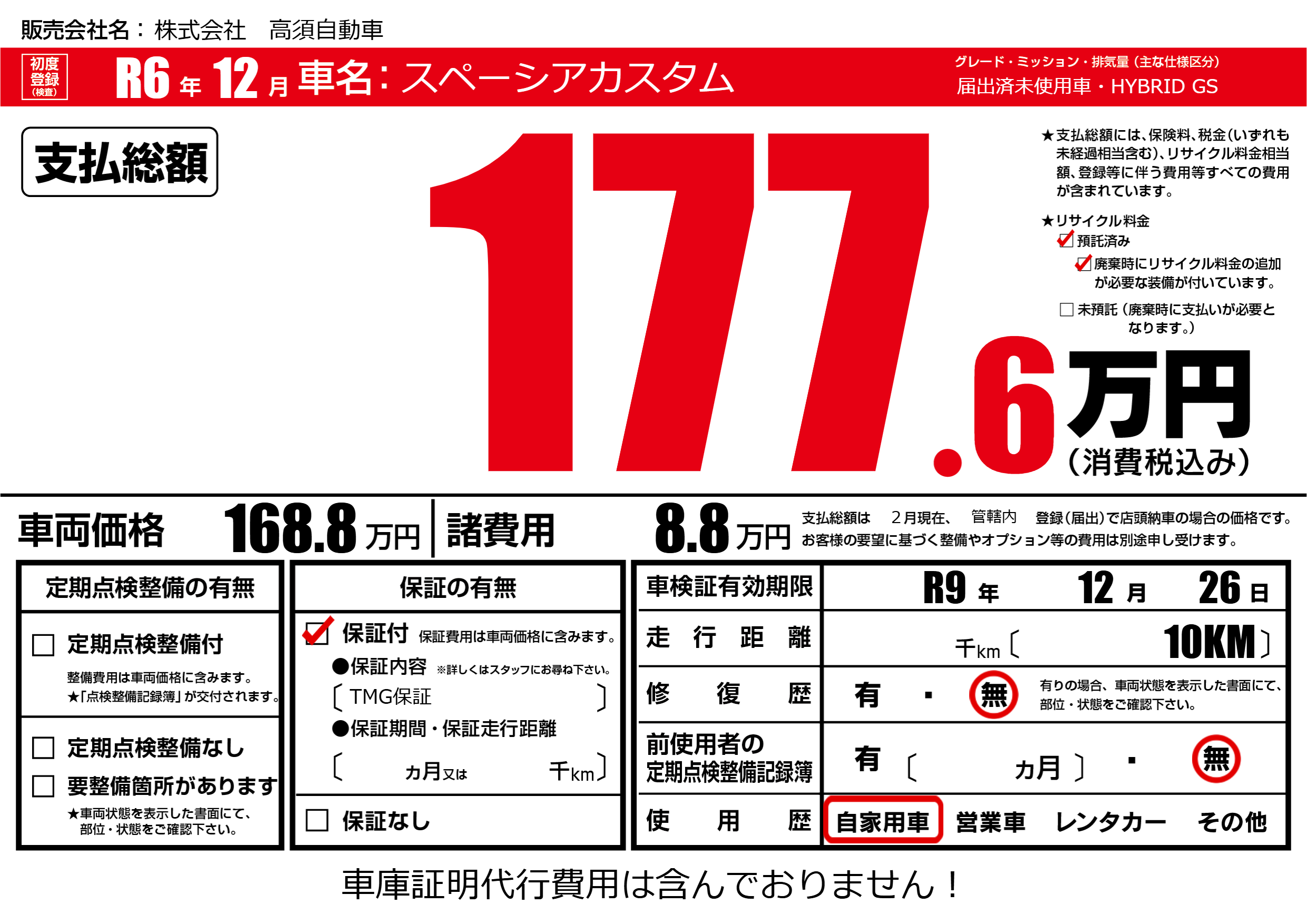 保証付き 保証内容(TMG保証) ---ヶ月または()千kmまで |