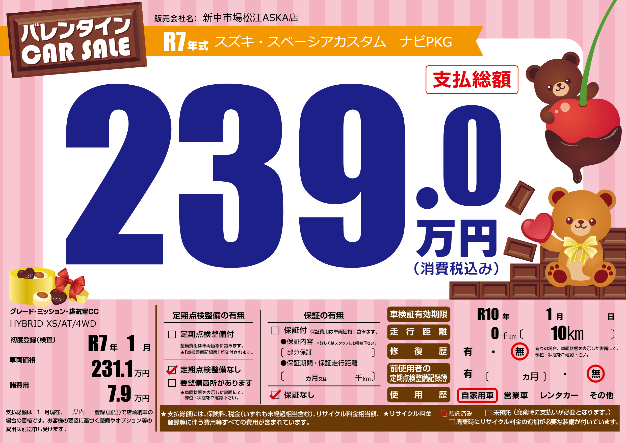 | 車検制限 | R10年 1月 - 日 | ||