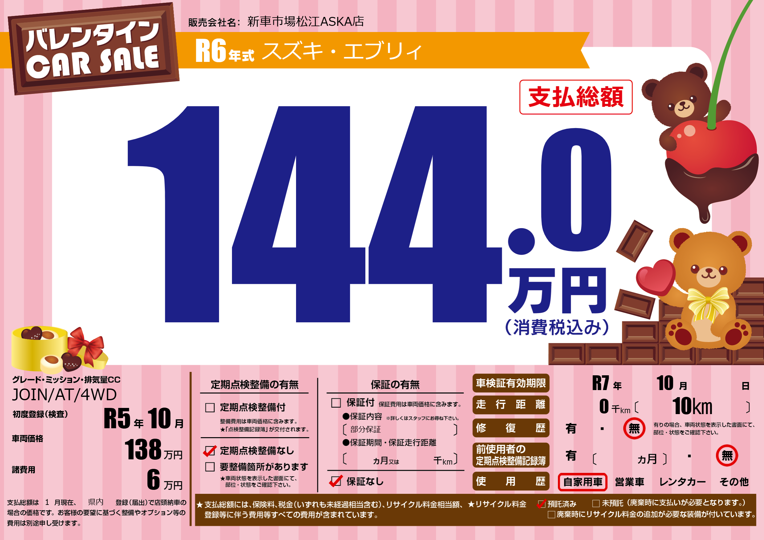 | 車名 | スズキ・エブリィ | グレード ミッション 排気量 |