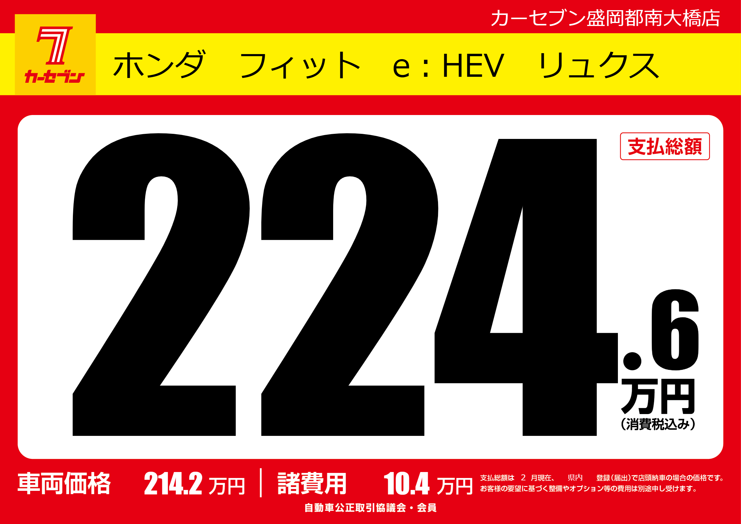 | 車名 | ホンダ フィット e:HEV リュクス | グレード ミッション 排気量 |
