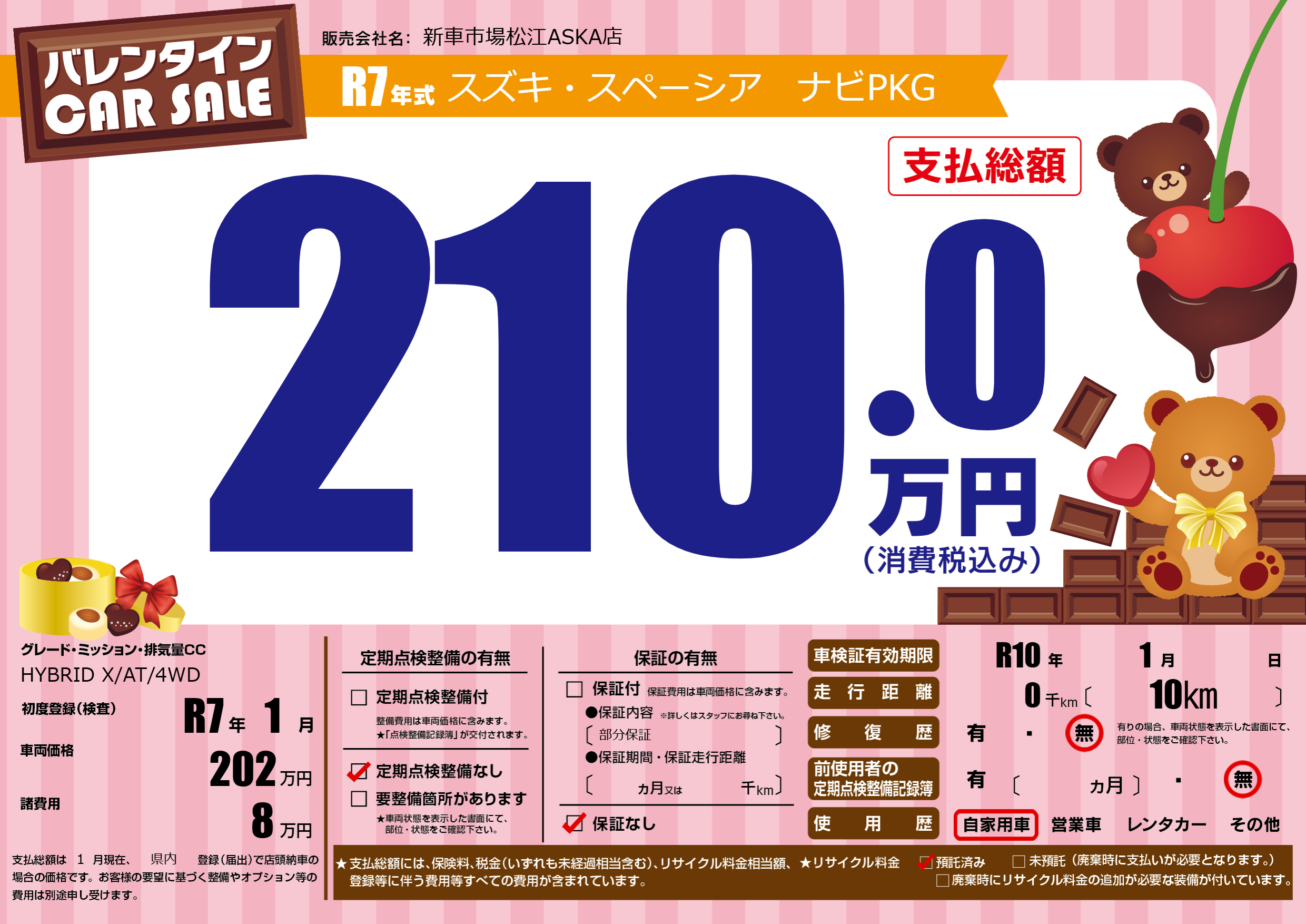 | 車名 | スズキ・スペーシア ナビPKG | グレード ミッション 排気量 |