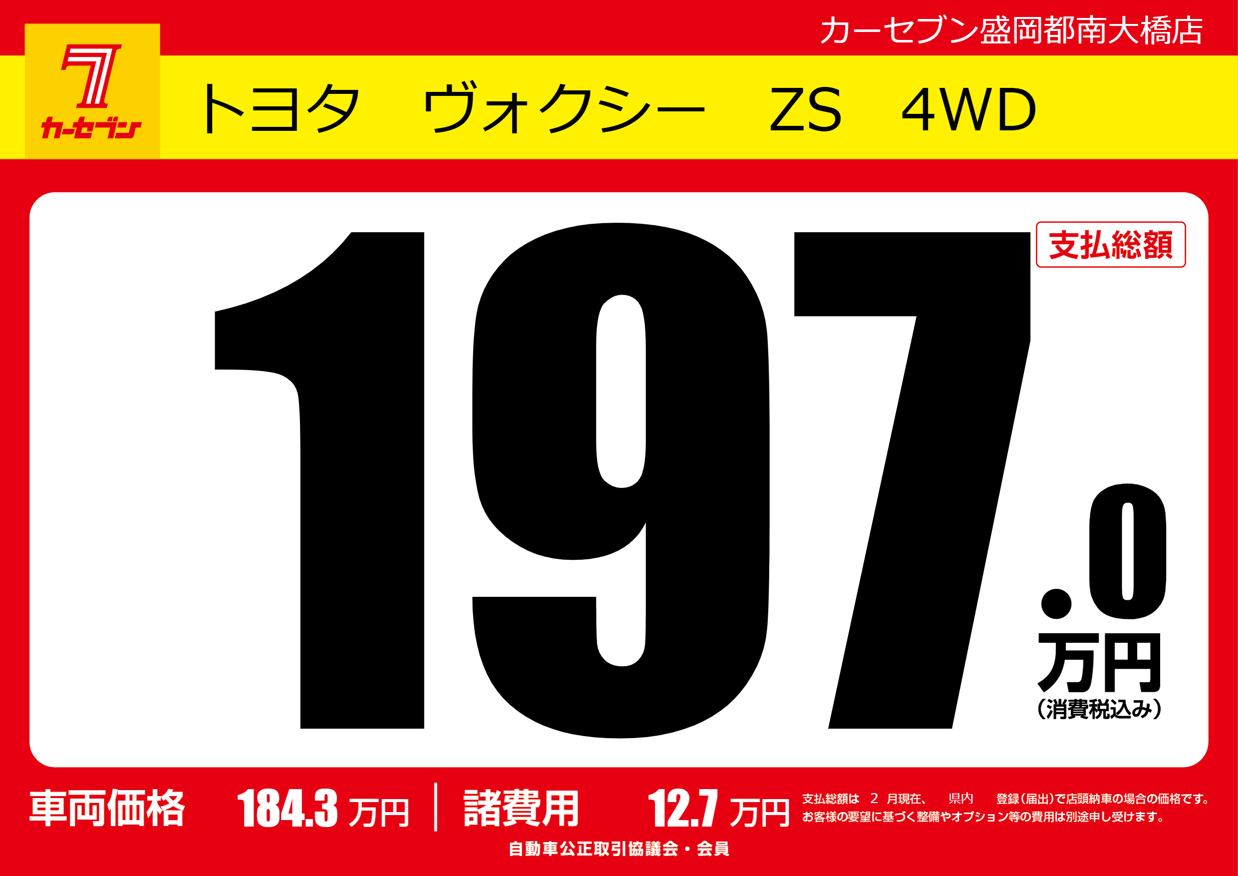 | 車名 | トヨタ ヴォクシー ZS 4WD | グレード ミッション 排気量 |