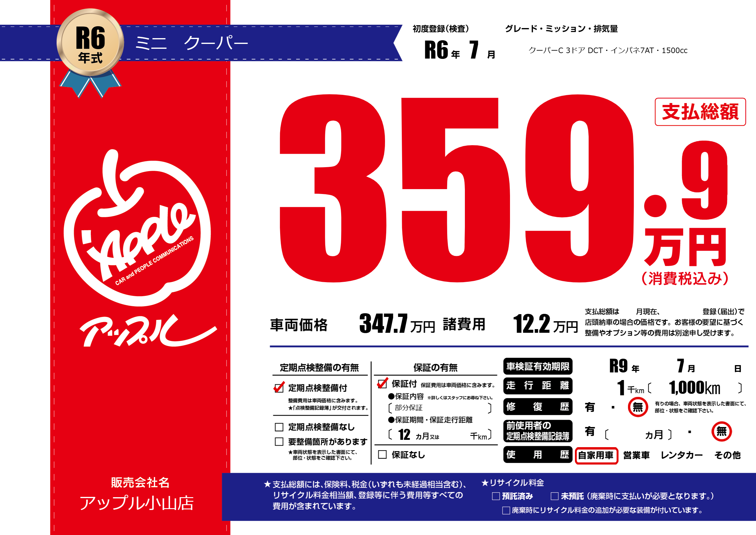 | 車名 | ミニ クーパー | グレード ミッション 排気量 |