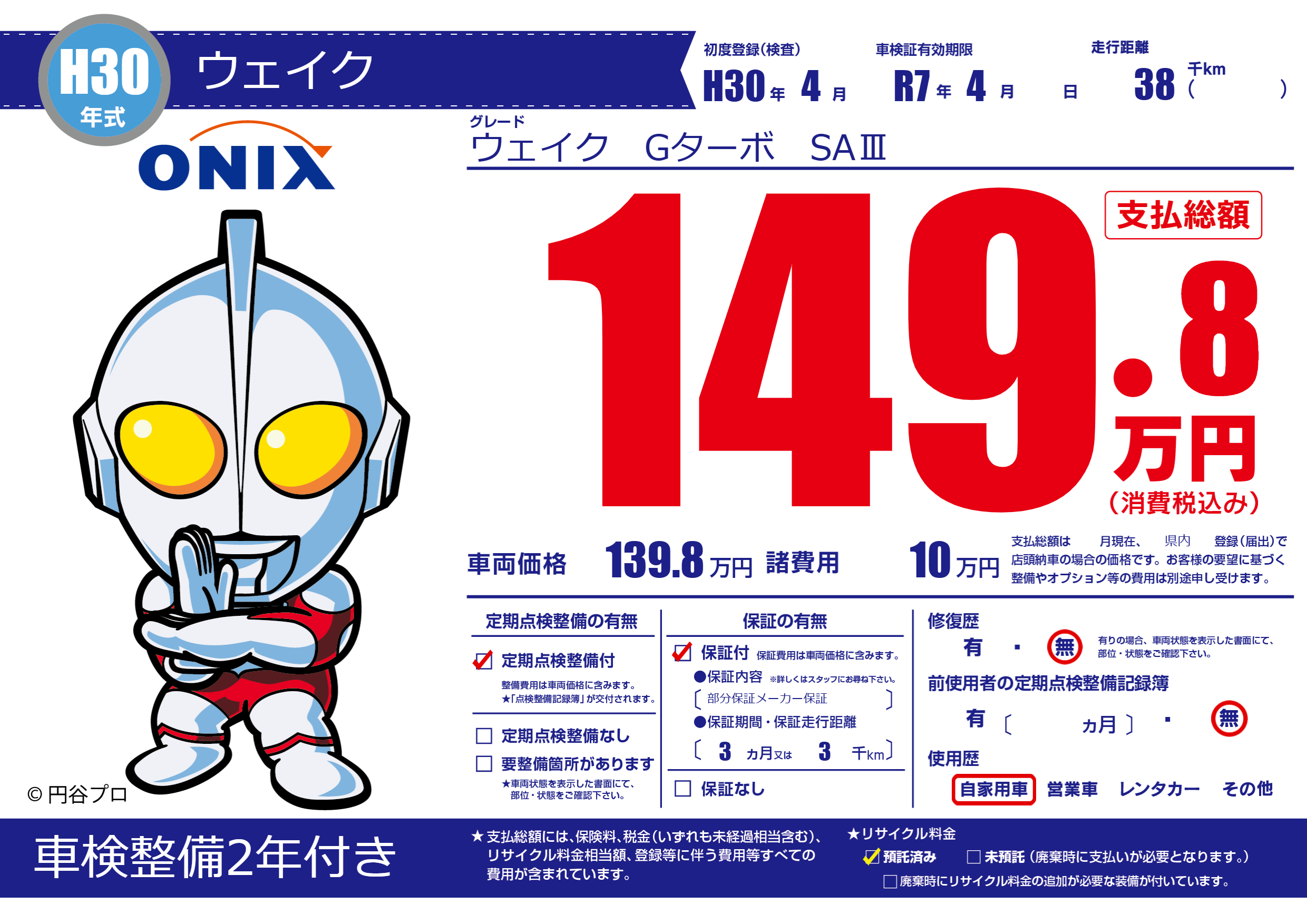 | 車名 | ウェイク | グレード ミッション 排気量 |
