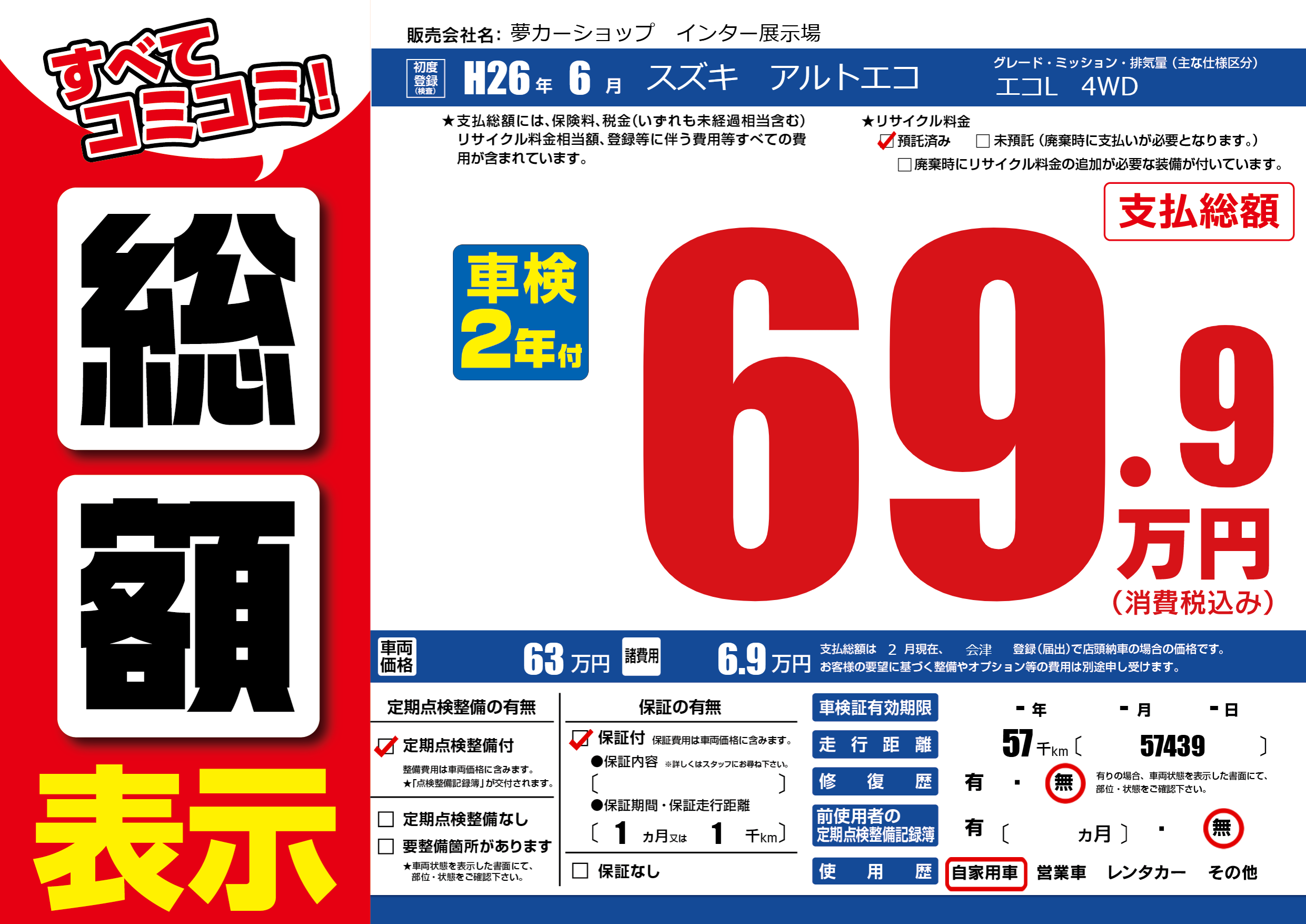 | 走行キロ | 5.7万km | ||