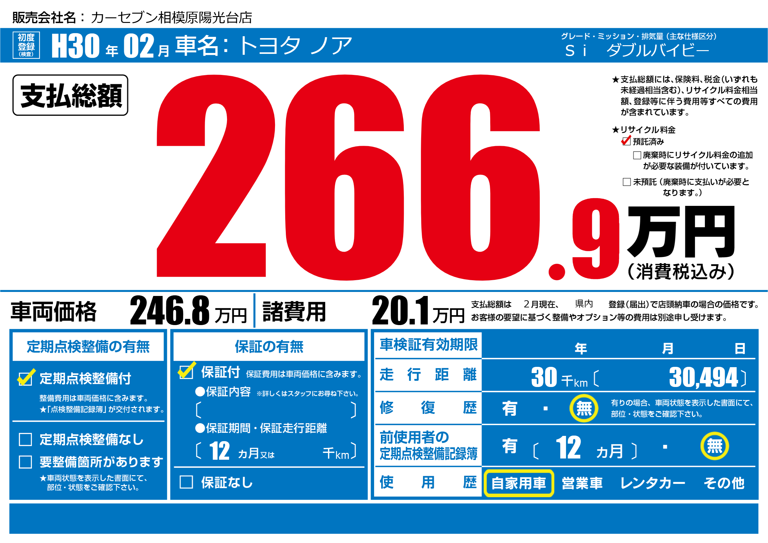 | 走行キロ | 3万km | 初年度登録 | H30年02月 |