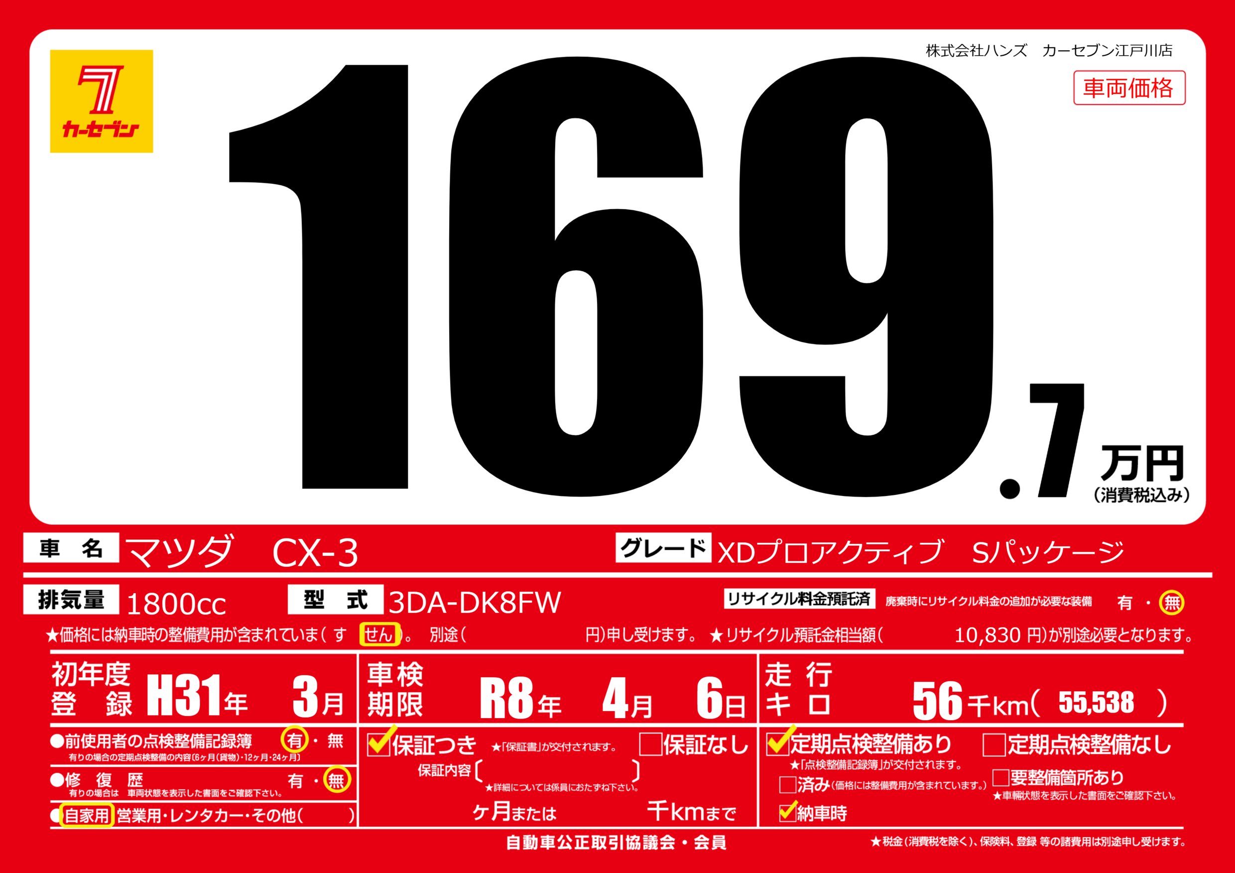 なし | 車検制限 | R8年4月6月 |