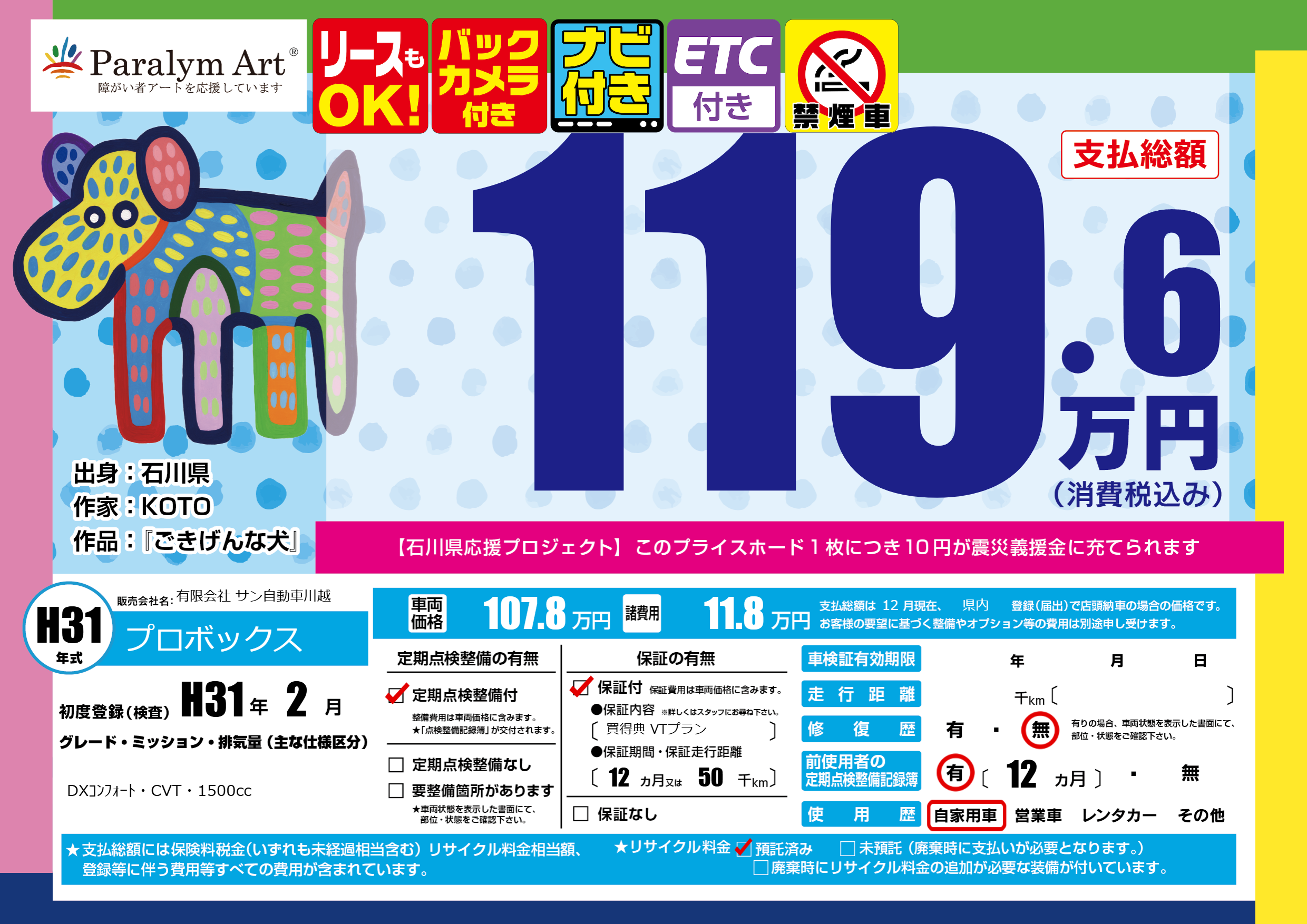 | 車名 | プロボックス | グレード ミッション 排気量 |