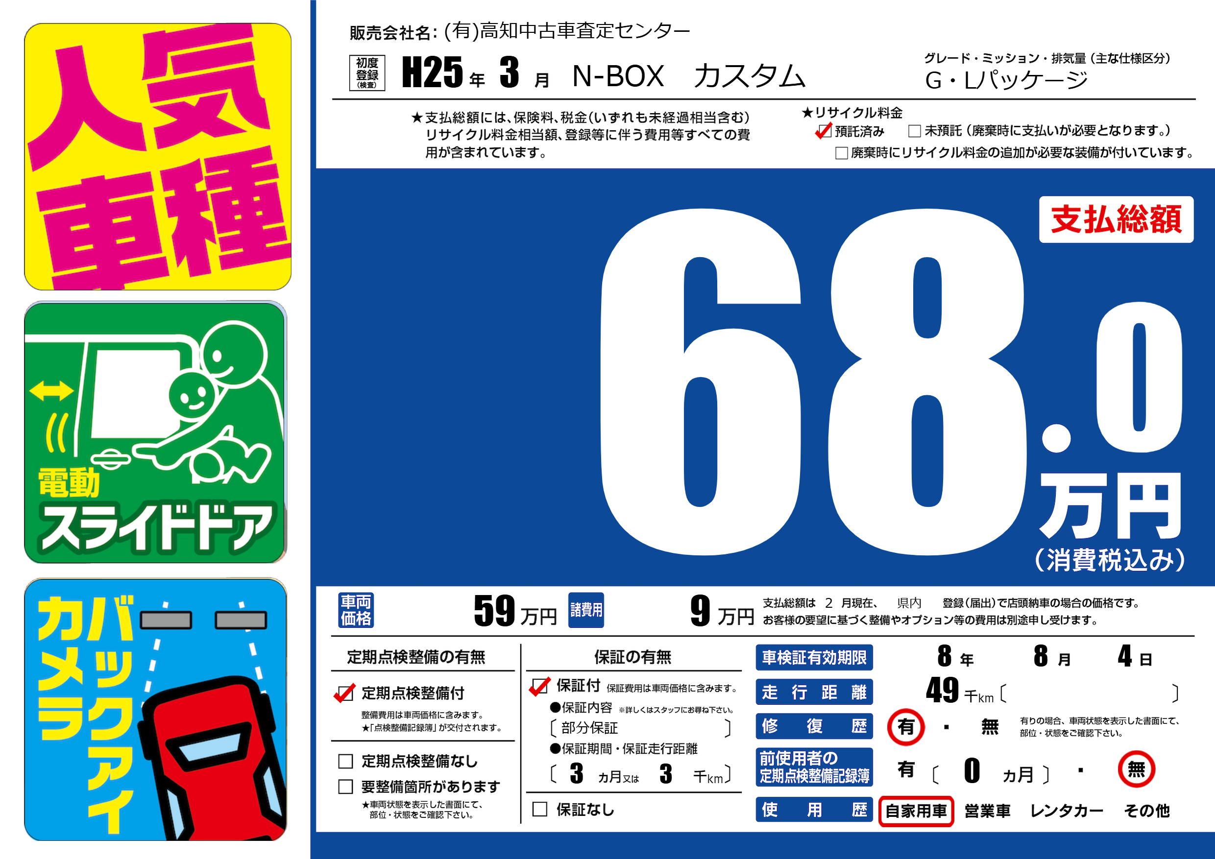 | 車名 | N-BOX カスタム | グレード ミッション 排気量 |