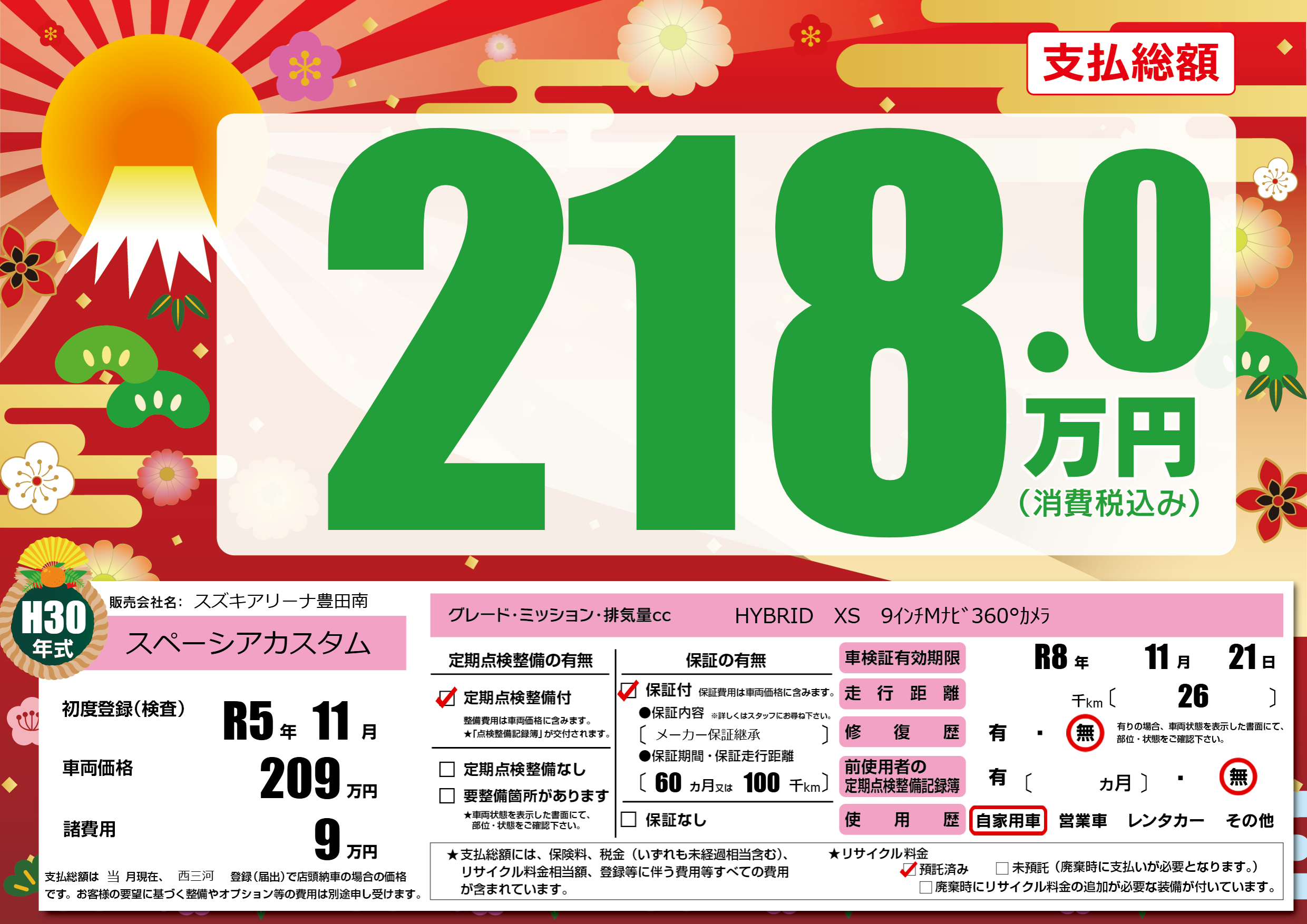 | 車名 | スペーシアカスタム | グレード ミッション 排気量 |