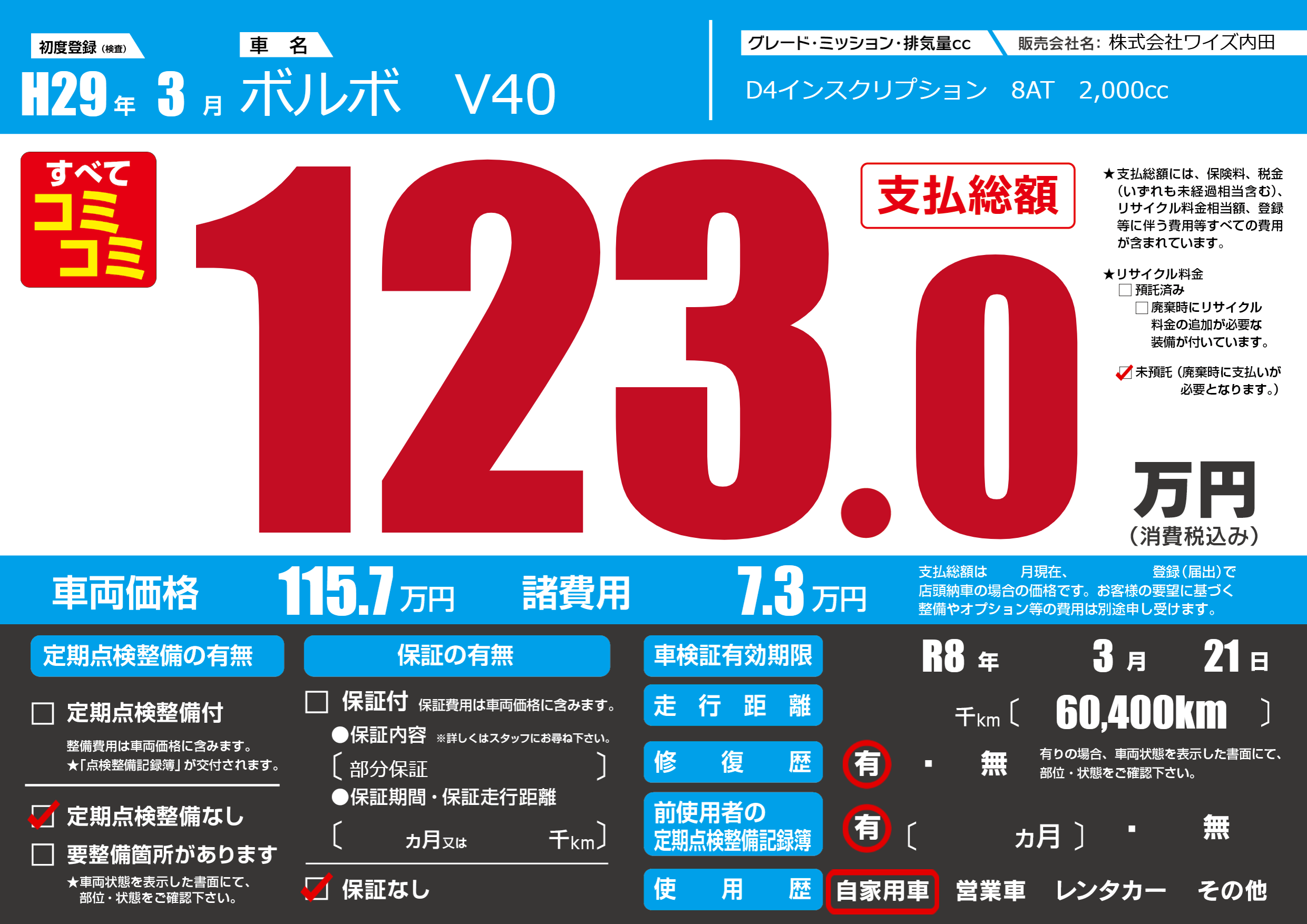 | 車検制限 | R8年 3月 21日 | ||