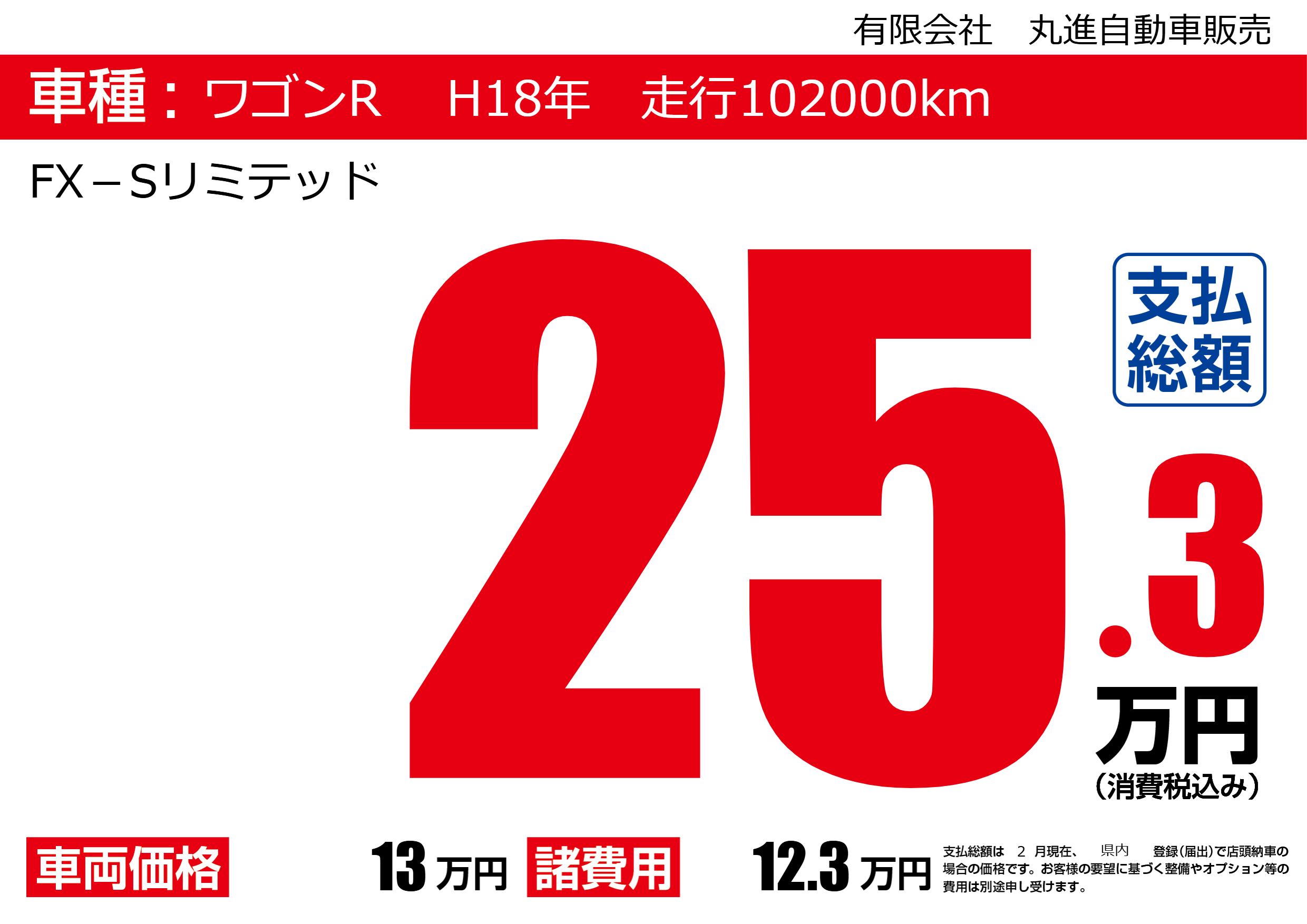 | 車名 | ワゴンR H18年 走行102000km | グレード ミッション 排気量 |