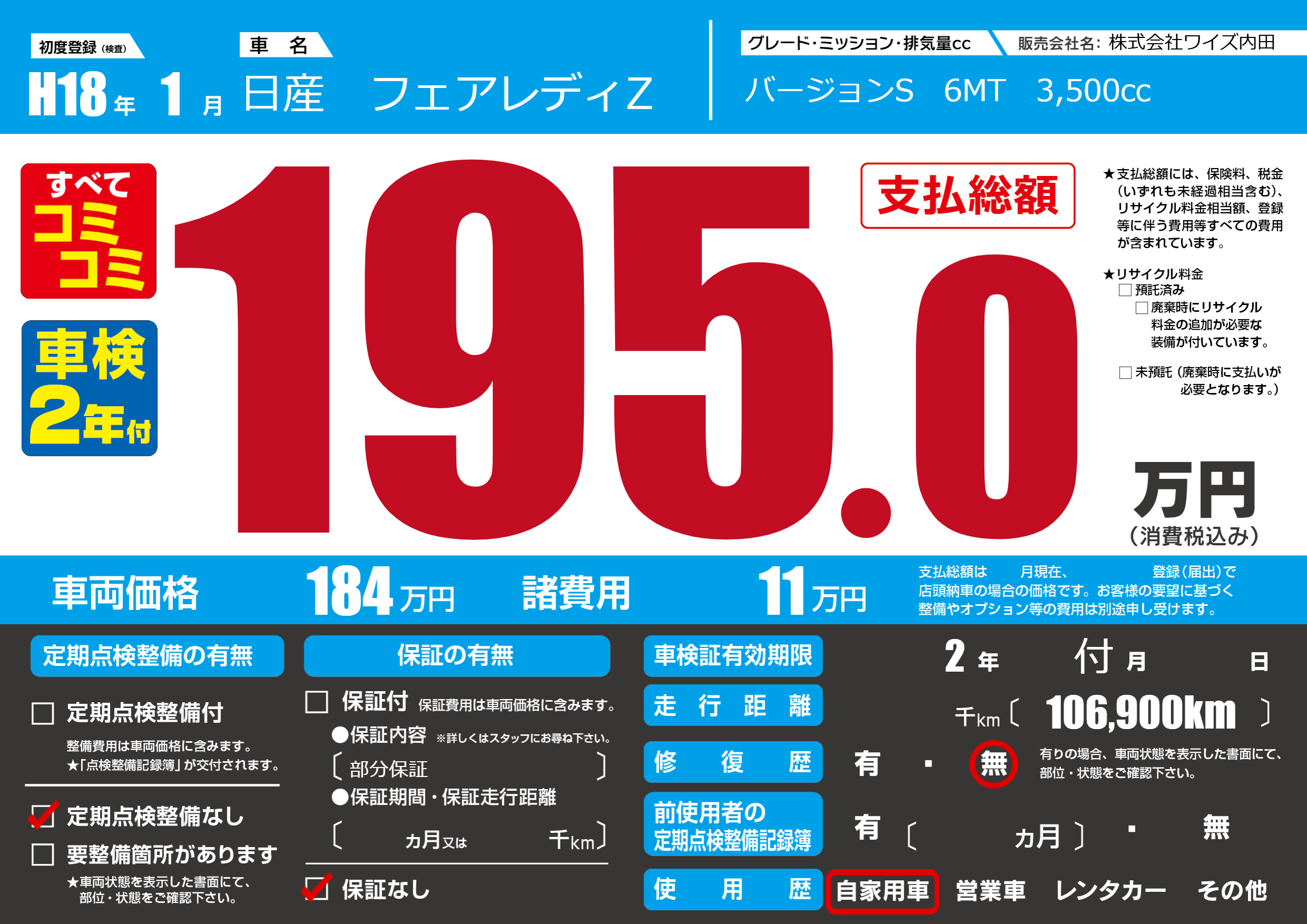| 車名 | 日産 フェアレディZ | グレード ミッション 排気量 |