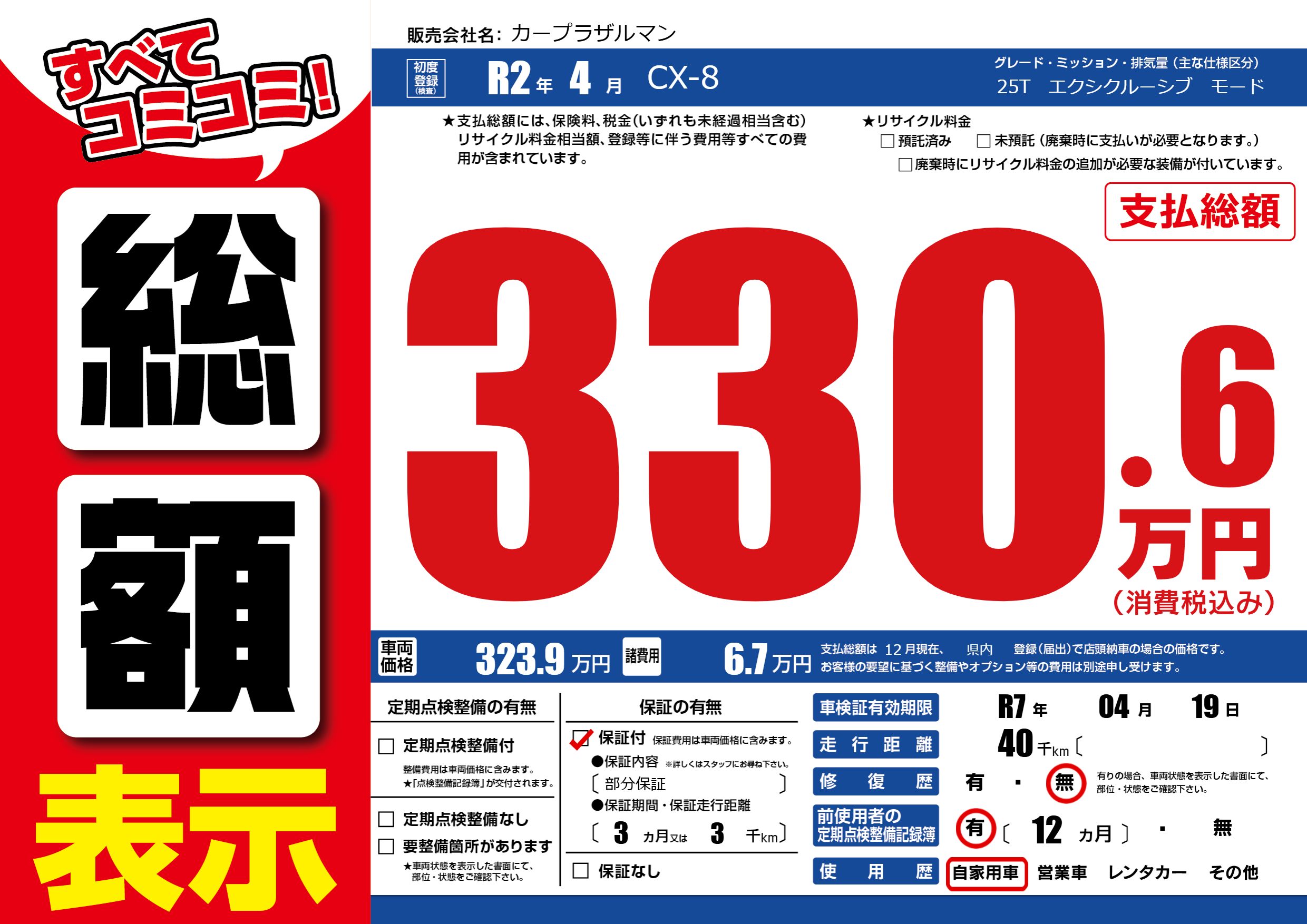 | 車名 | CX-8 | グレード ミッション 排気量 |