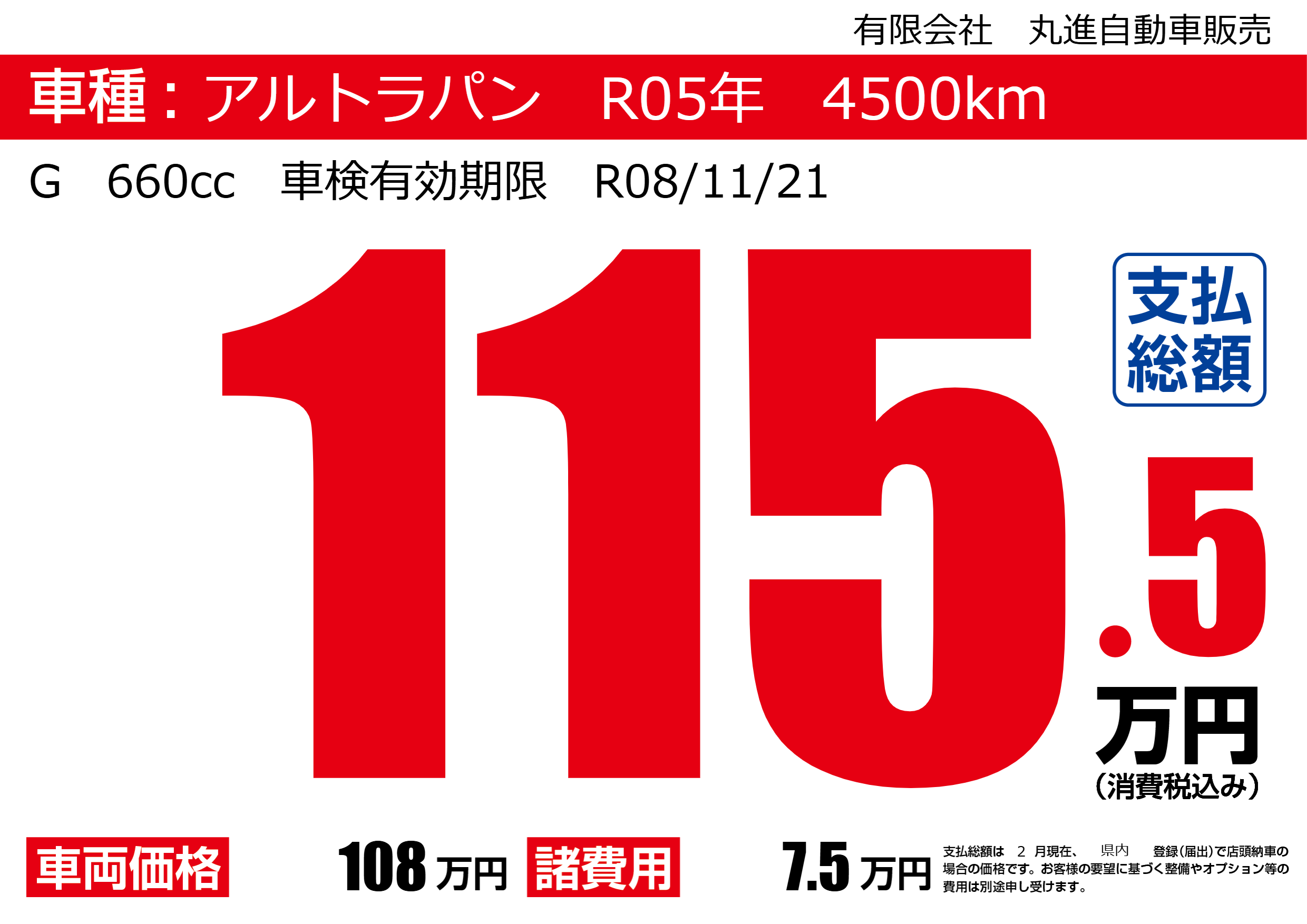 | 車名 | アルトラパン R05年 4500km | グレード ミッション 排気量 |