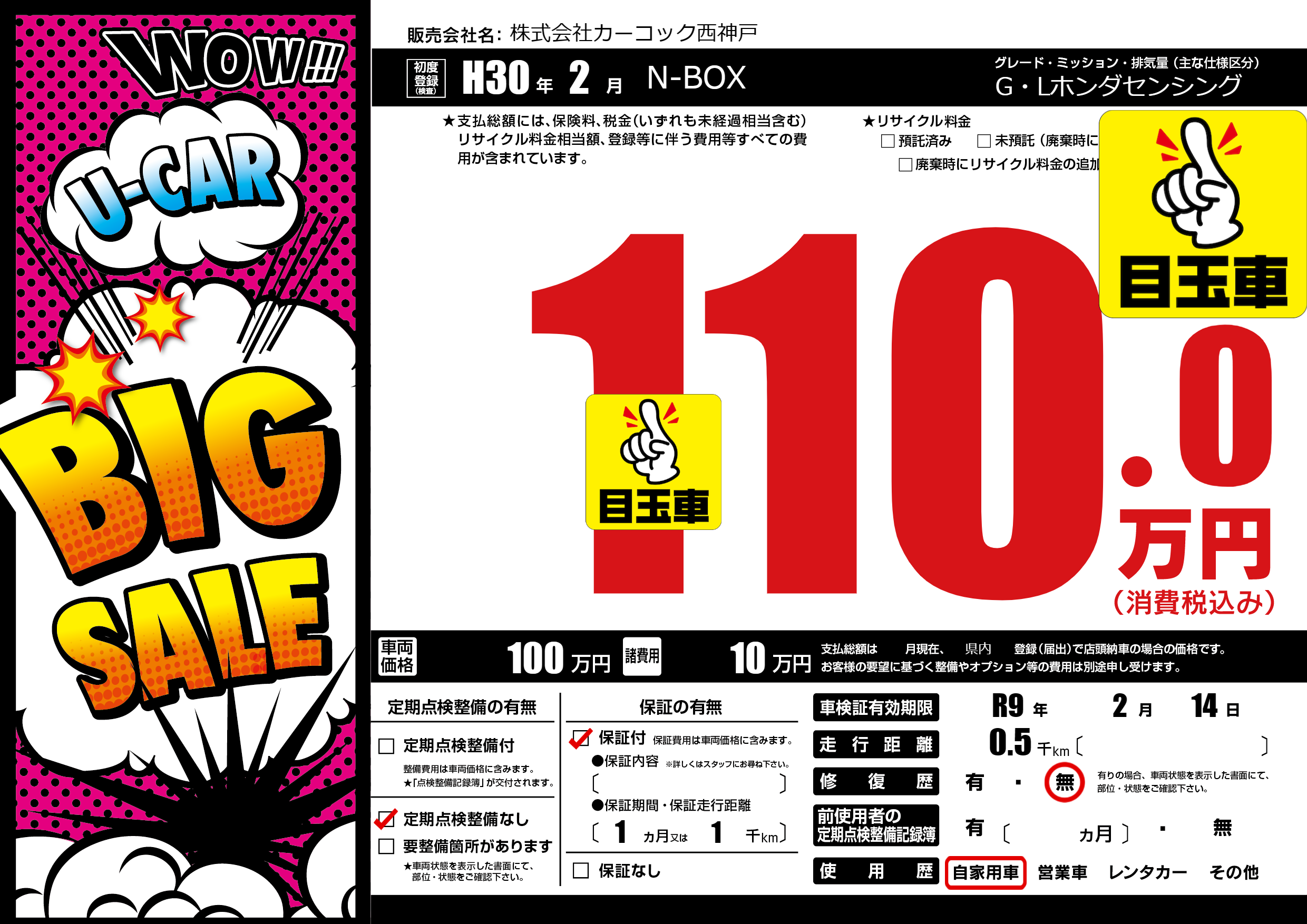 | 走行キロ | - | 初年度登録 | H30年2月 |