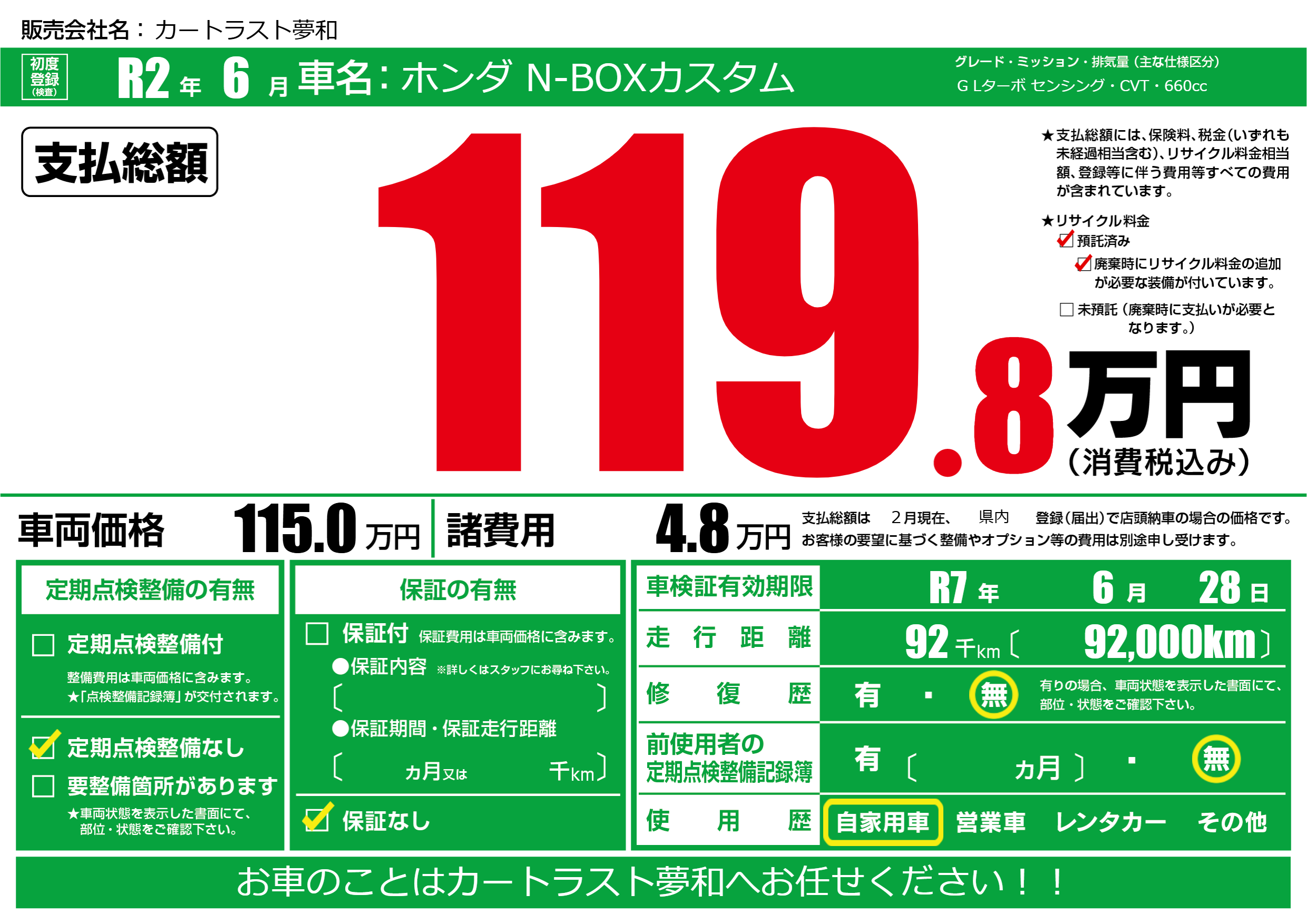 なし | 車検制限 | R7年6月28月 |