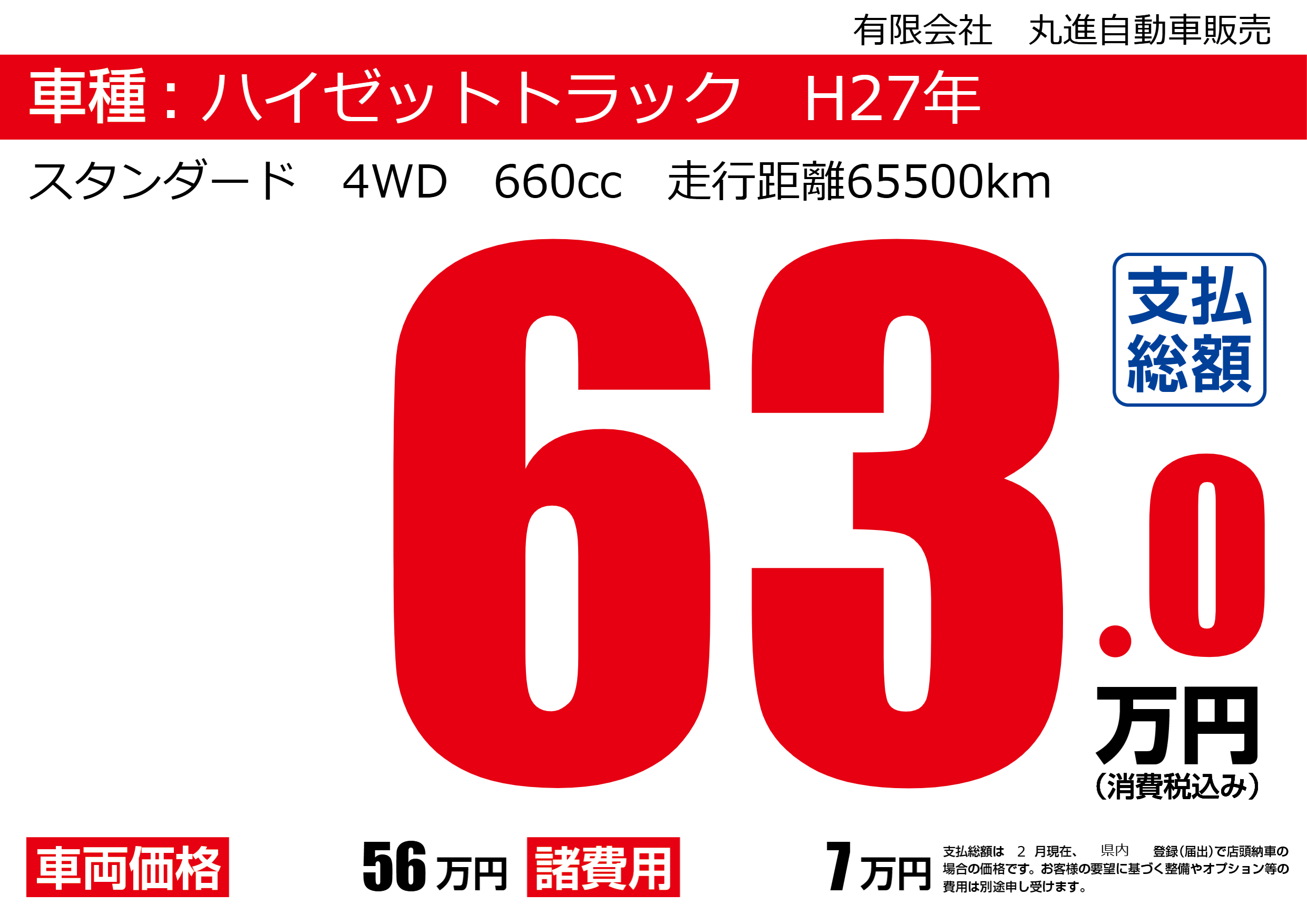 スタンダード 4WD 660cc 走行距離65500km |