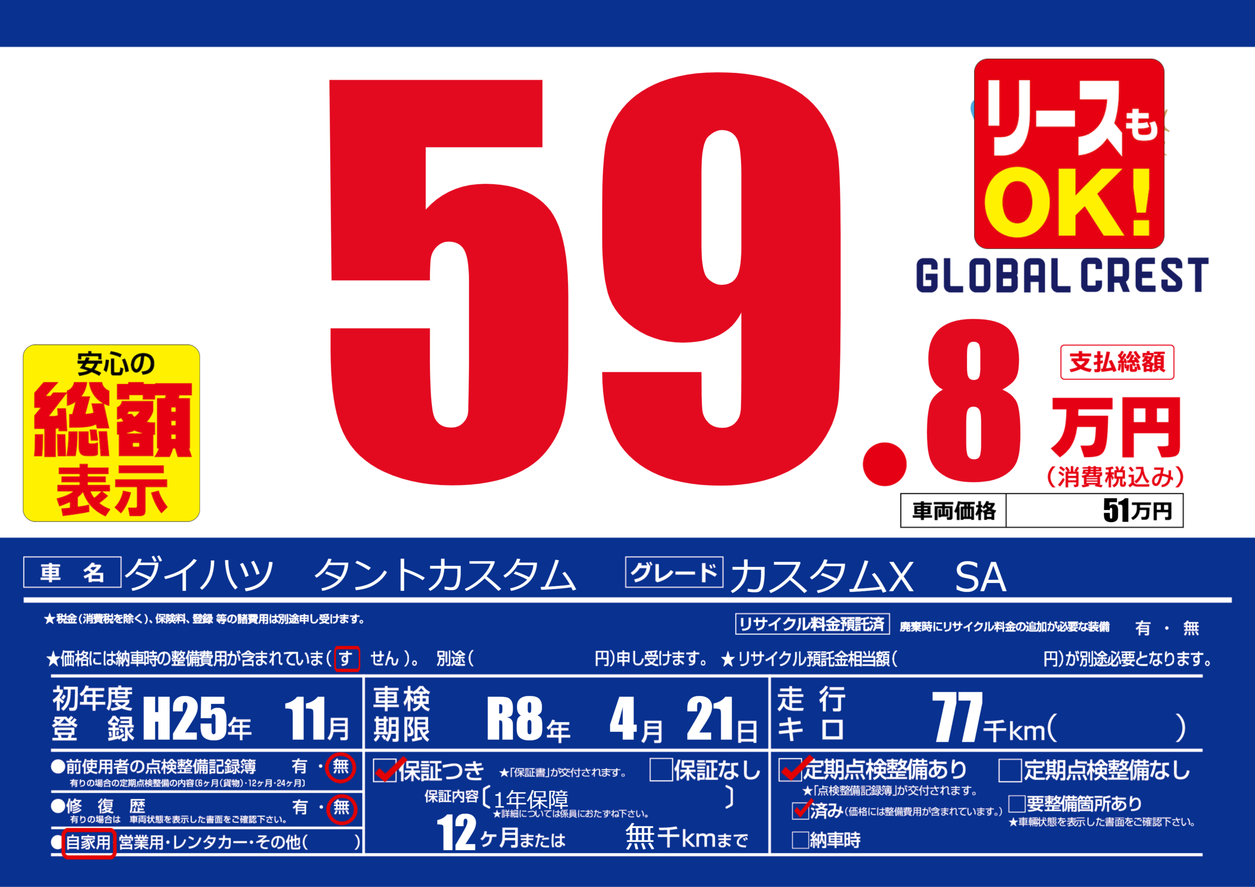 | 定期点検整備 | 定期点検整備あり 定期点検整備済み | ||