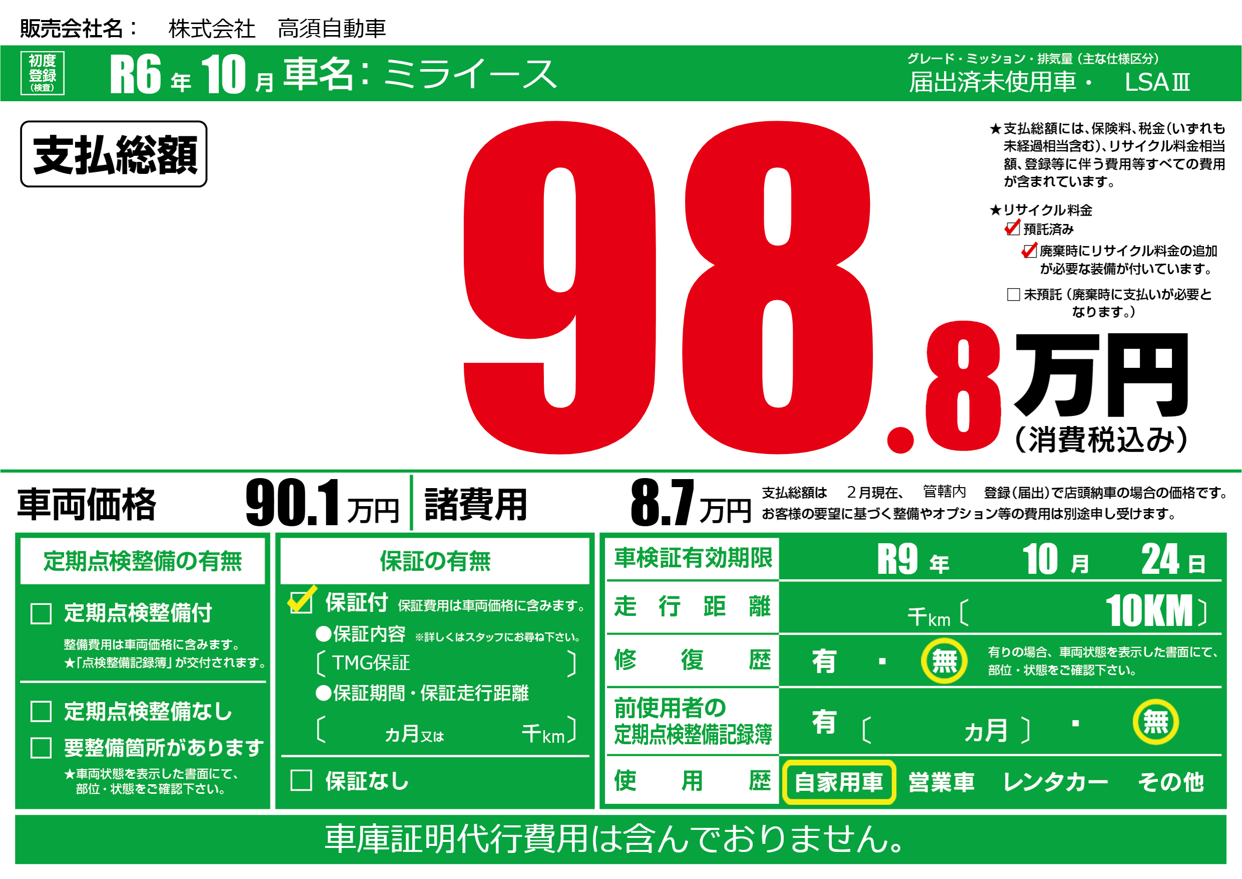 保証付き 保証内容(TMG保証) ---ヶ月または()千kmまで |