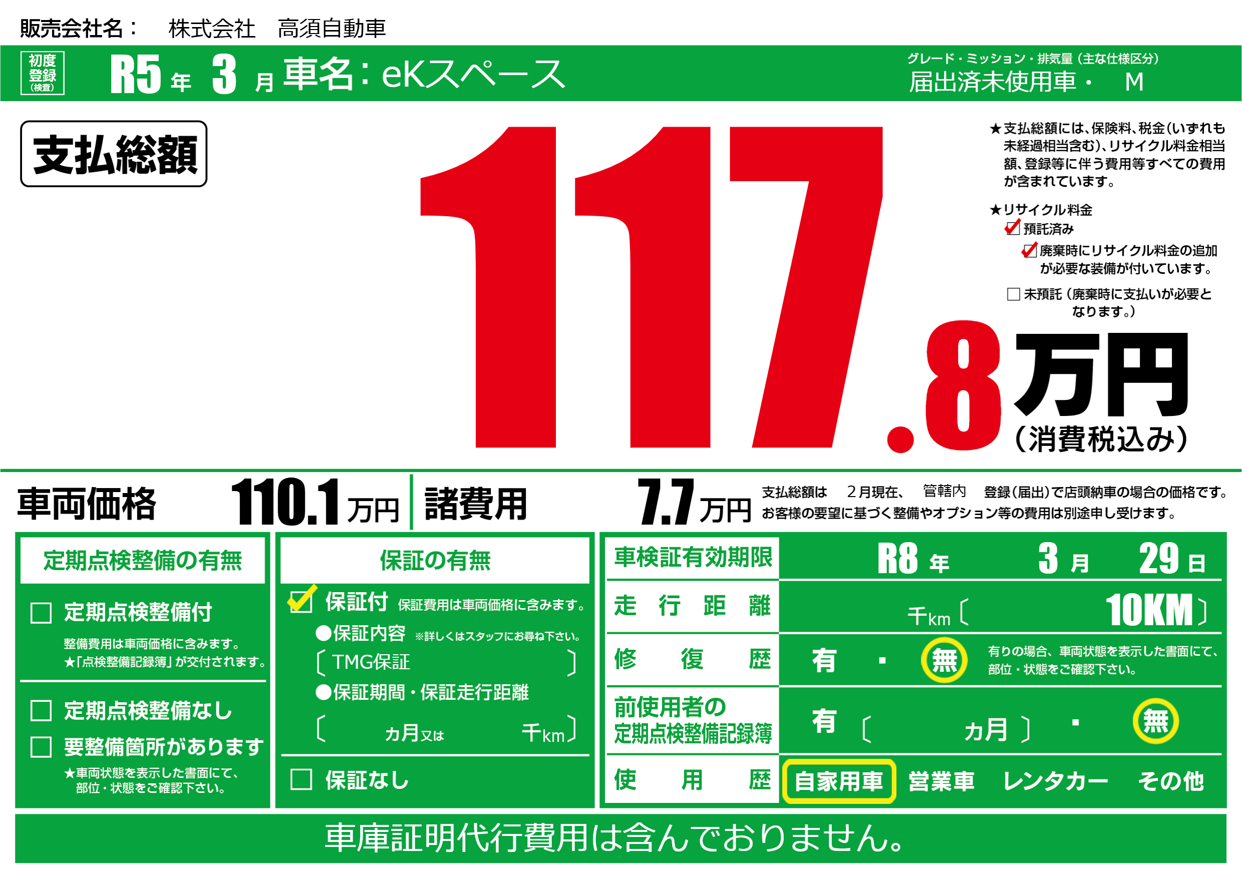 保証付き 保証内容(TMG保証) ---ヶ月または()千kmまで |