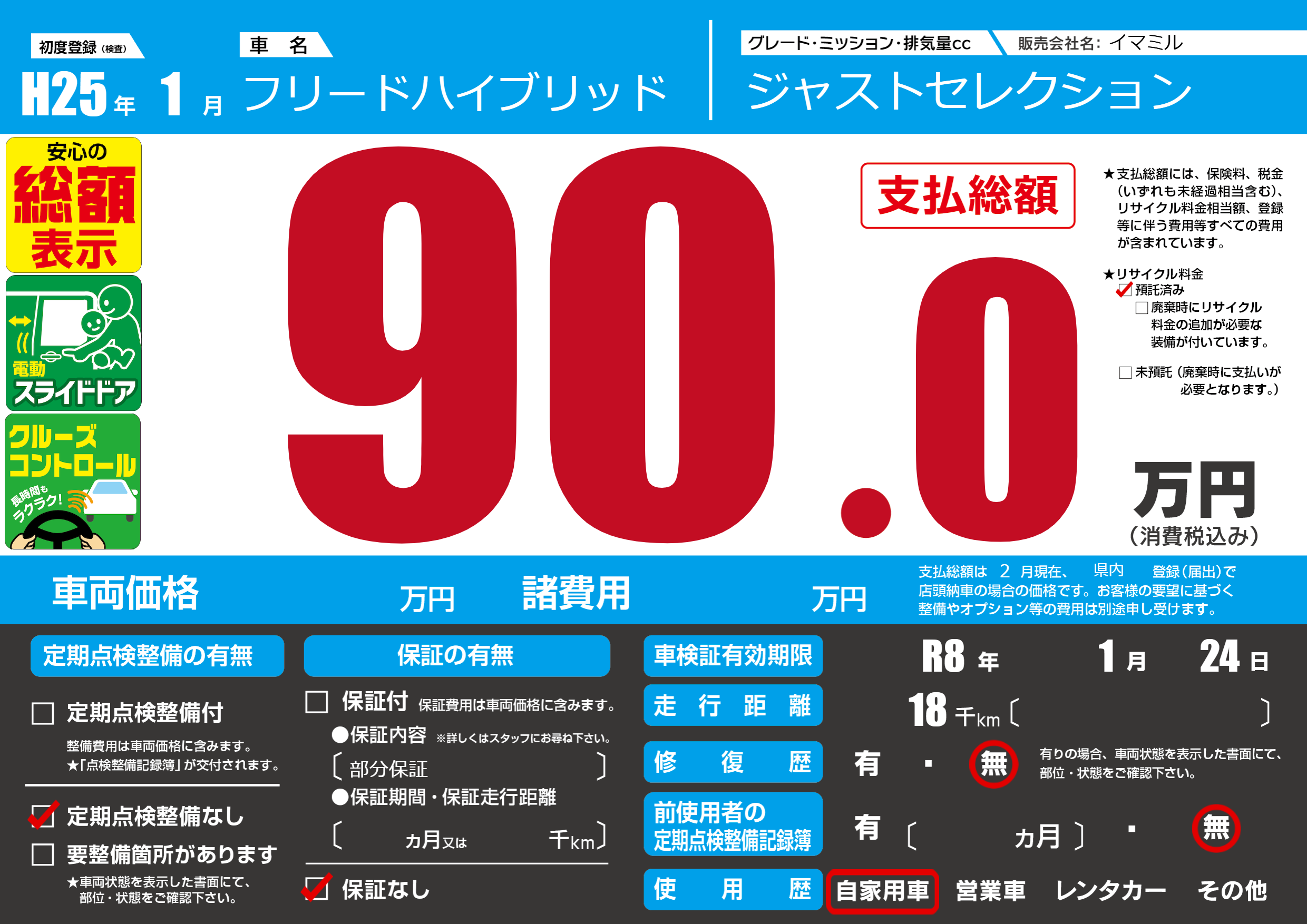 | 走行キロ | 1.8万km | 初年度登録 | H25年1月 |