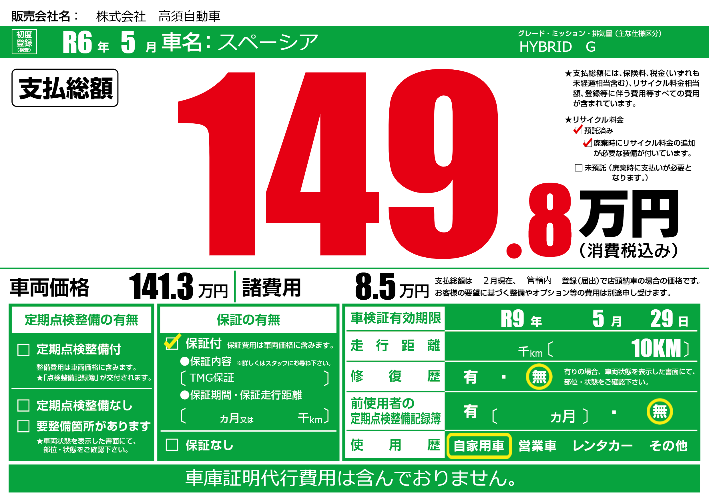 なし | 車検制限 | R9年5月29月 |