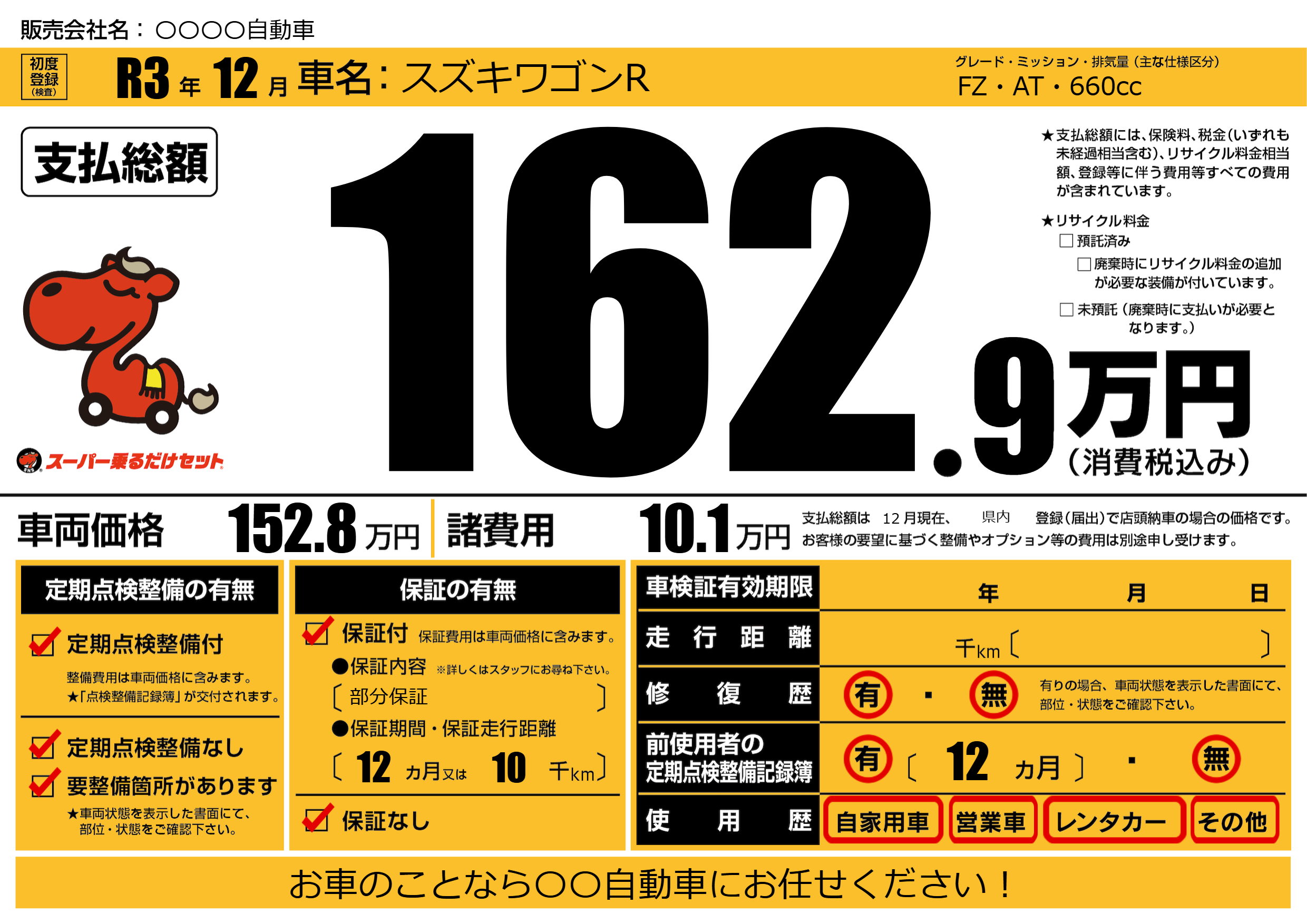 | 車名 | スズキワゴンR | グレード ミッション 排気量 |