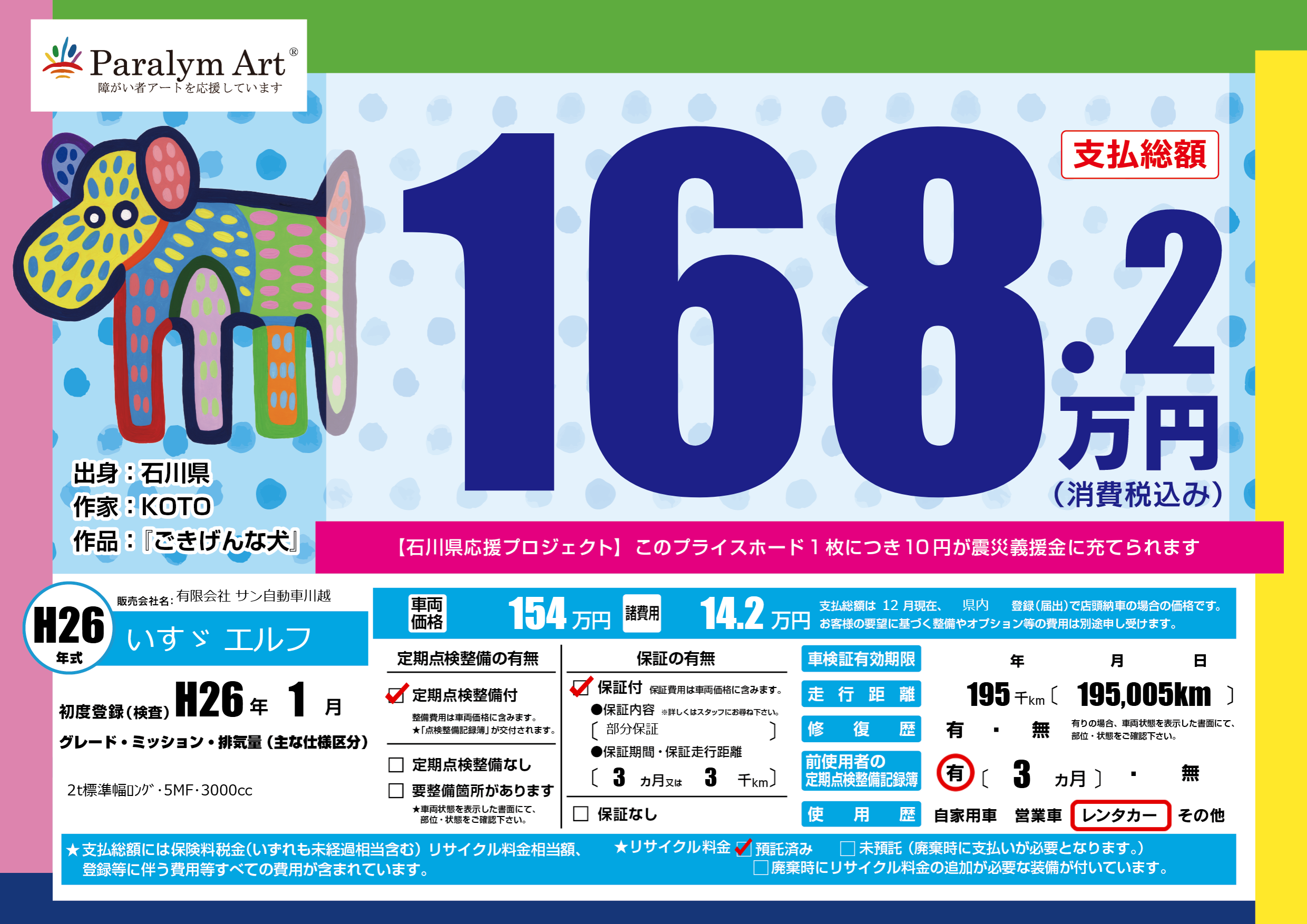 | 走行キロ | 19.5万km | 初年度登録 | H26年1月 |