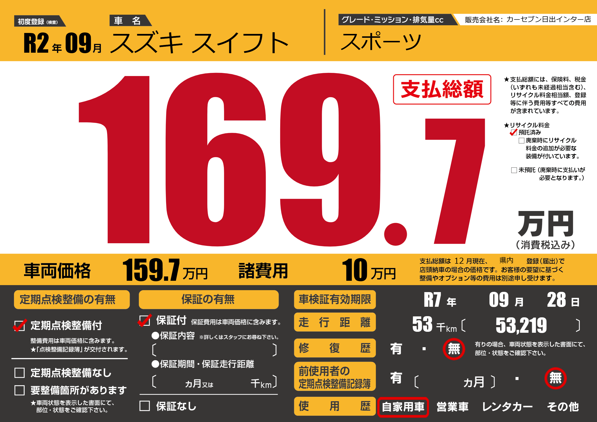 | 車名 | スズキ スイフト | グレード ミッション 排気量 |