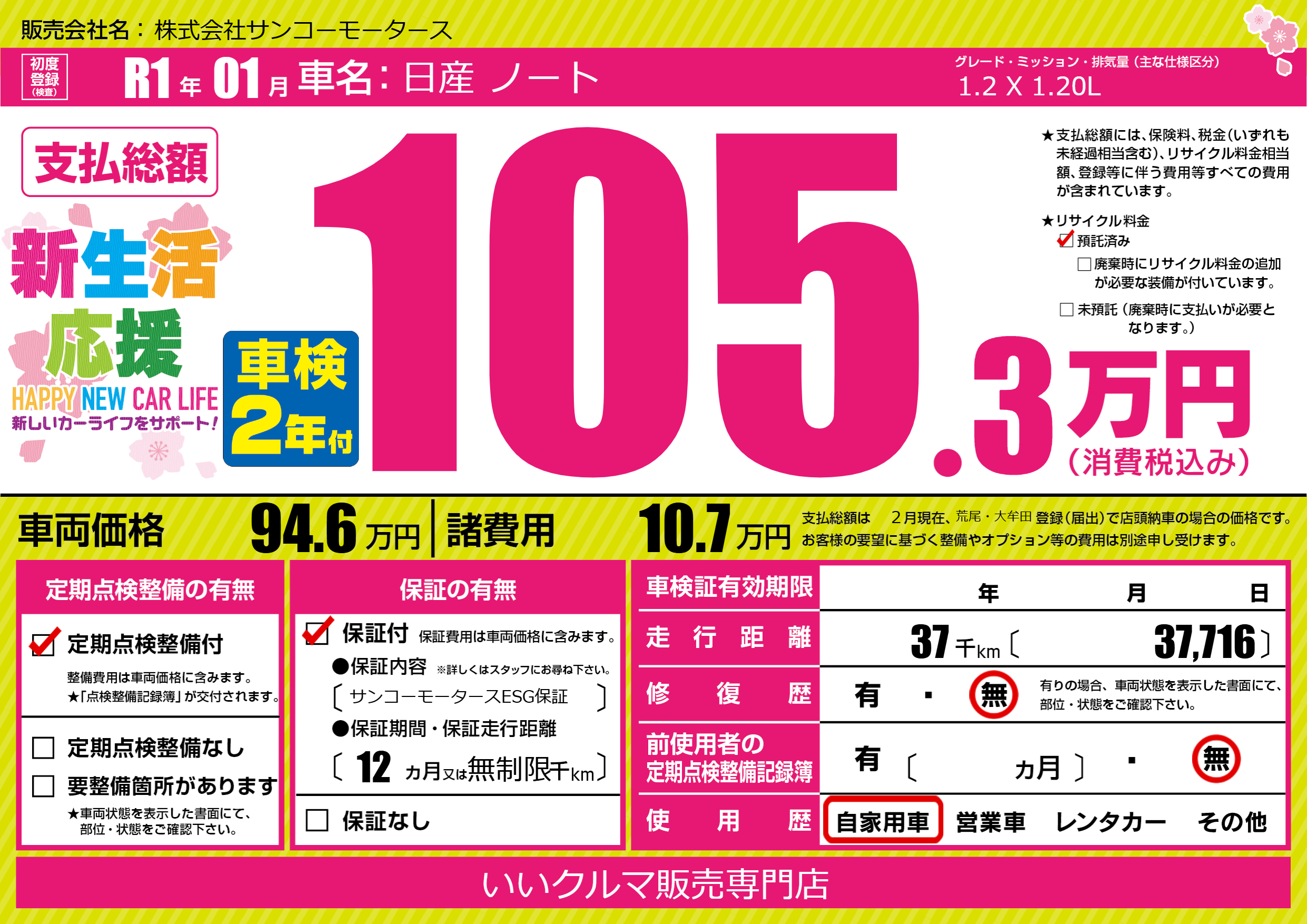 | 定期点検整備 | 定期点検整備あり | ||