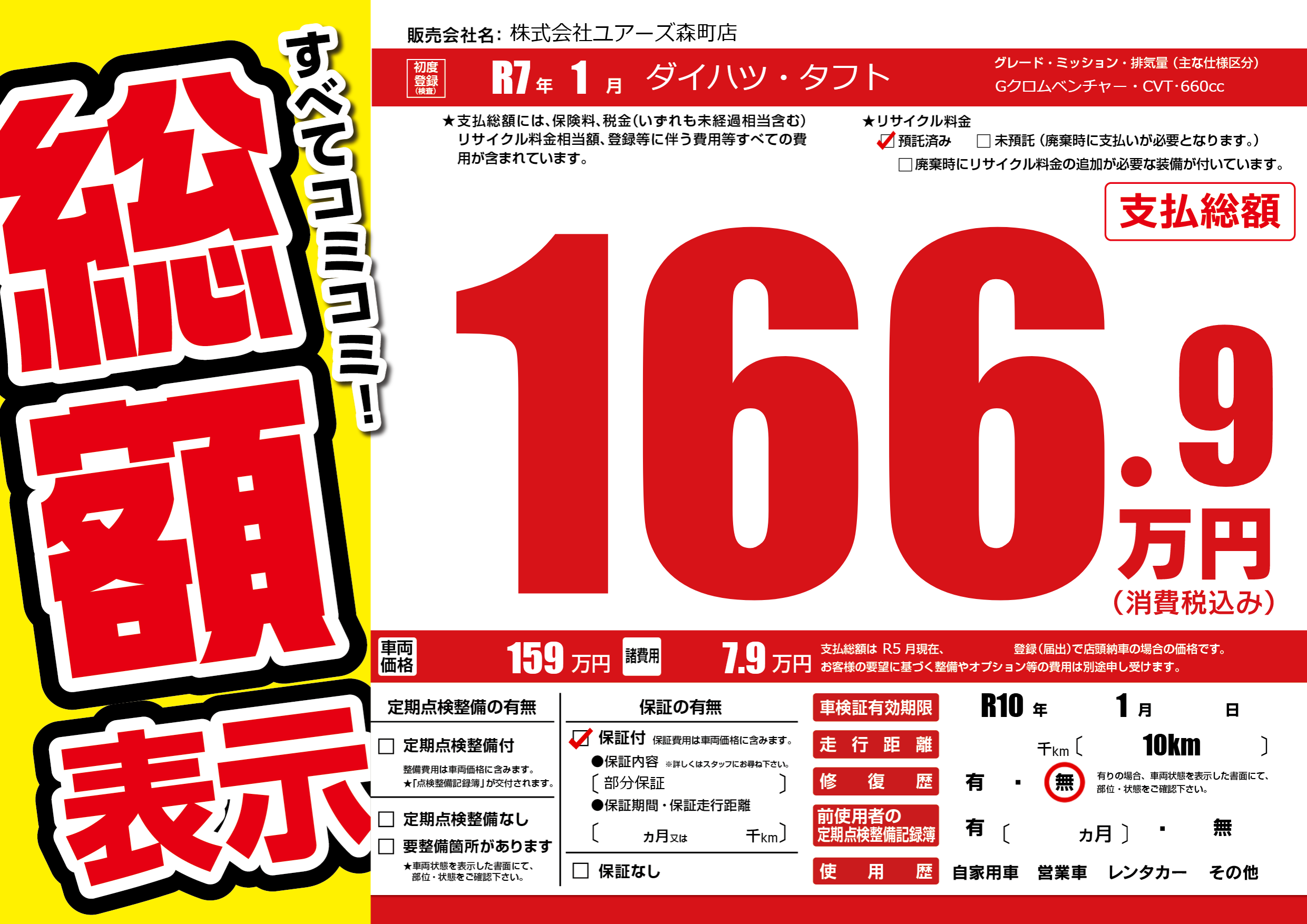 なし | 車検制限 | R10年1月---月 |